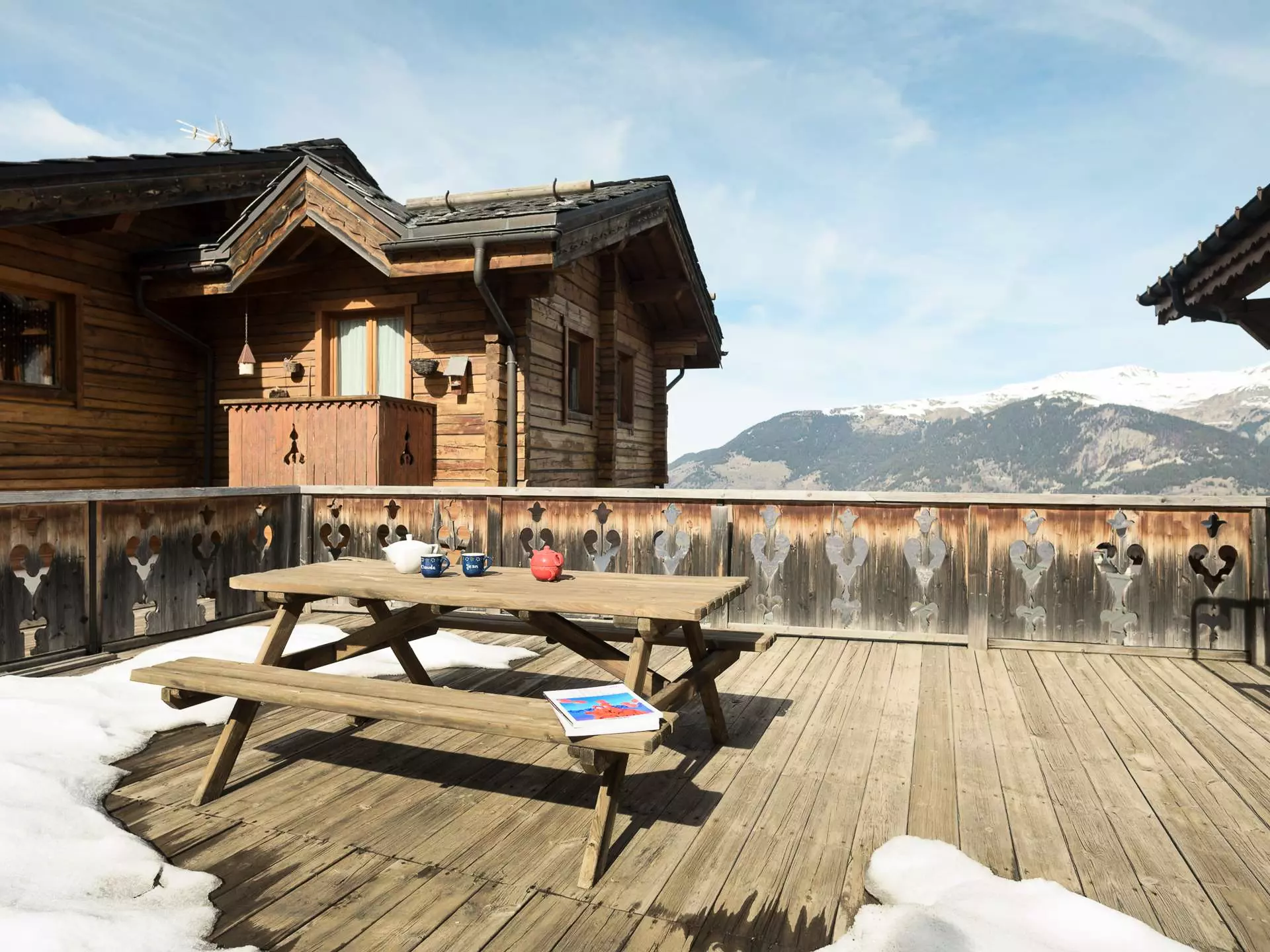 - Une grande terrasse avec table en bois,