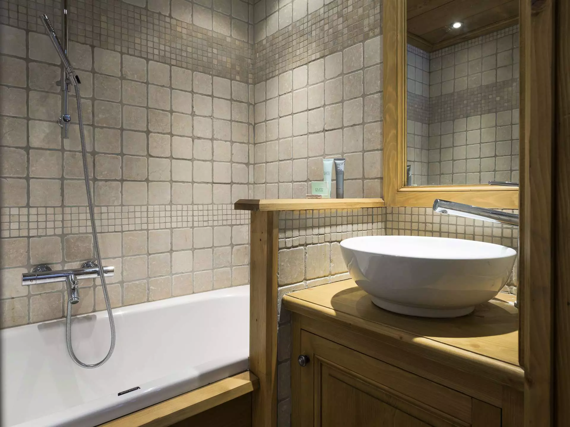 - Une chambre double (160x200) avec TV, salle de bain attenante avec baignoire et WC,