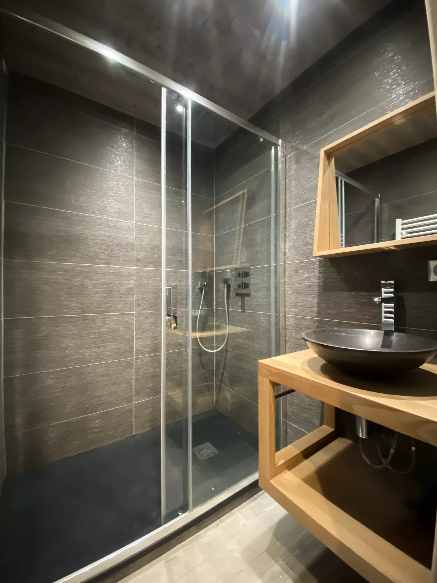 Cet appartement de 55M2, entièrement rénové avec des matériaux de qualité, est au 4ème étage a un balcon orienté sud ouest avec une belle vue sur les montagnes et le village.