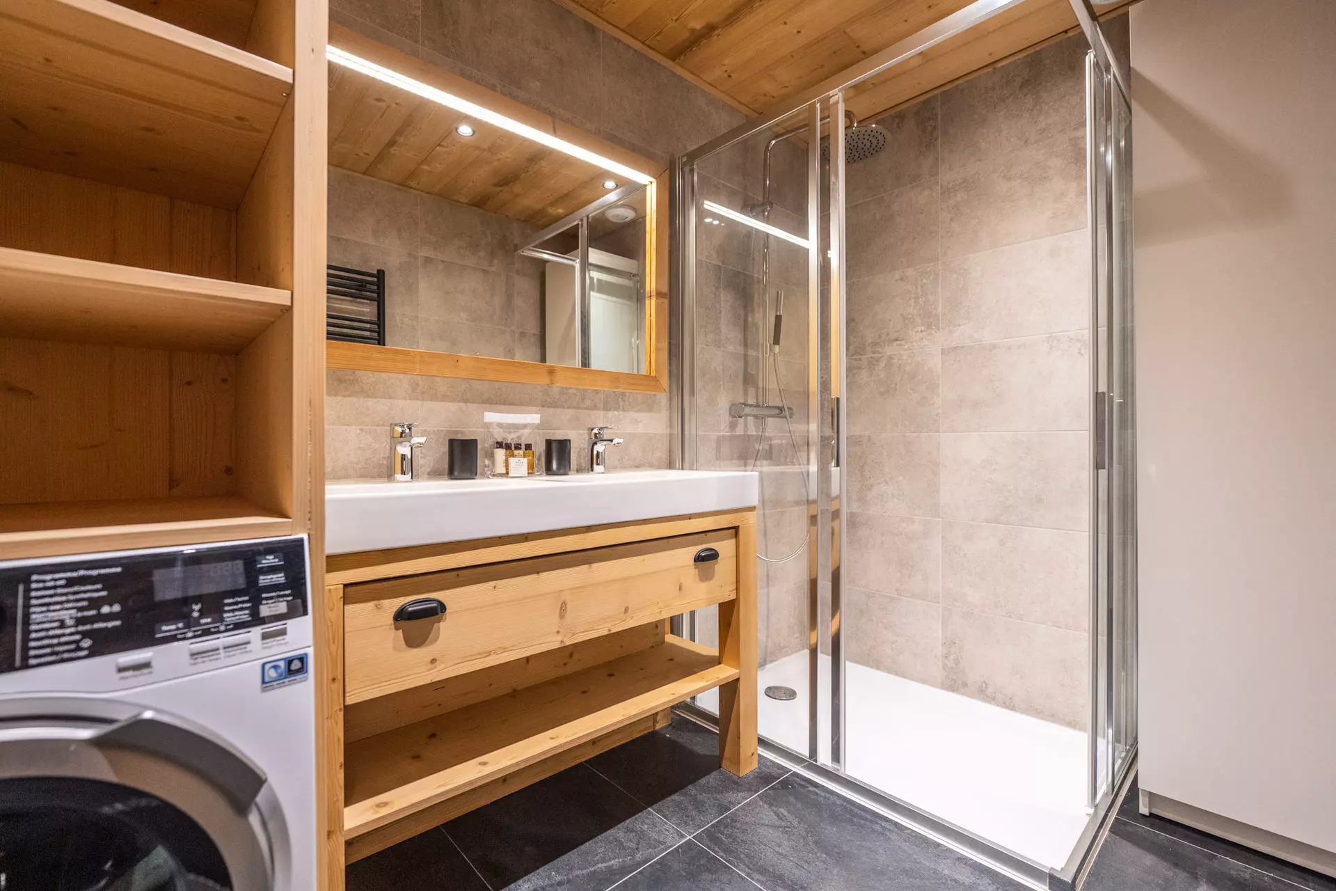 - 1 salle d'eau indépendante (douche, double vasque, machine à laver)