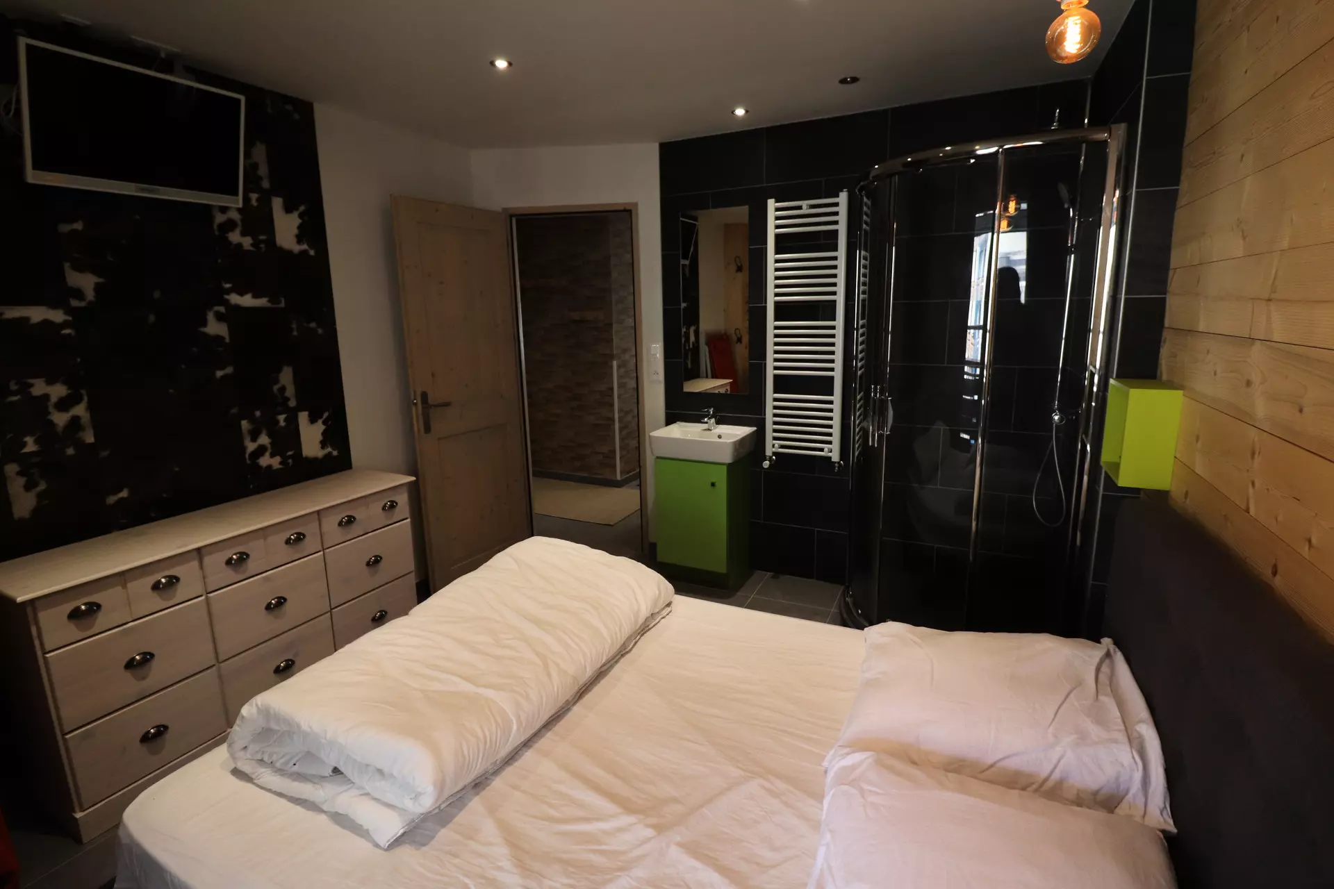 Chambre n°3: un lit double et salle de douche attenante avec wc