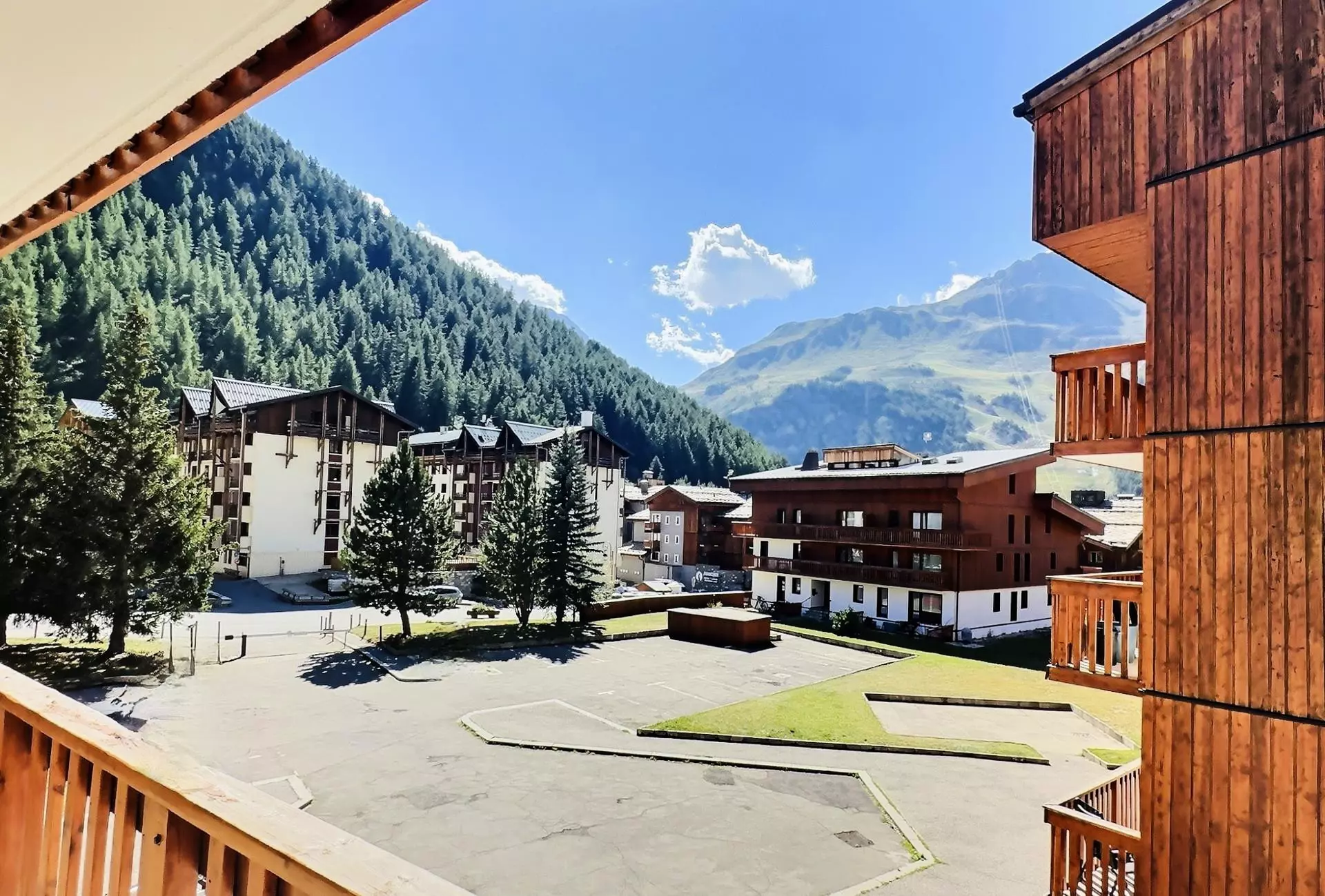 Pour votre séjour au ski ou vos vacances d'été à Val d'Isère, réservez ce 3 pièces avec un balcon exposé ouest et une jolie vue sur la montagne, la vallée et les pistes.