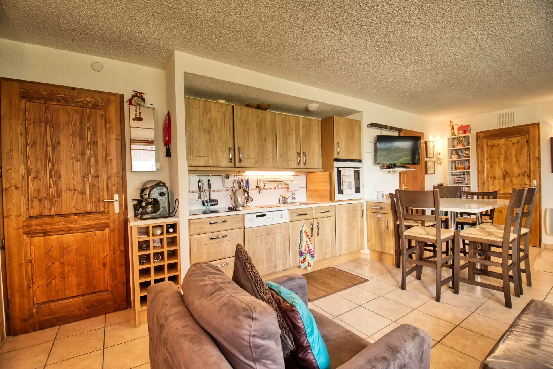 La cuisine est équipée d'un réfrigérateur/surgélateur, plaques vitrocéramiques, d'un lave-vaisselle, d'un lave-linge, d'un four, d'un four micro-ondes, d'une cafetière électrique, d'une bouilloire électrique, d'un appareil à raclette, petit appareil à fondue chocolat ainsi que d'une vaisselle et d'une batterie de cuisine complètes.