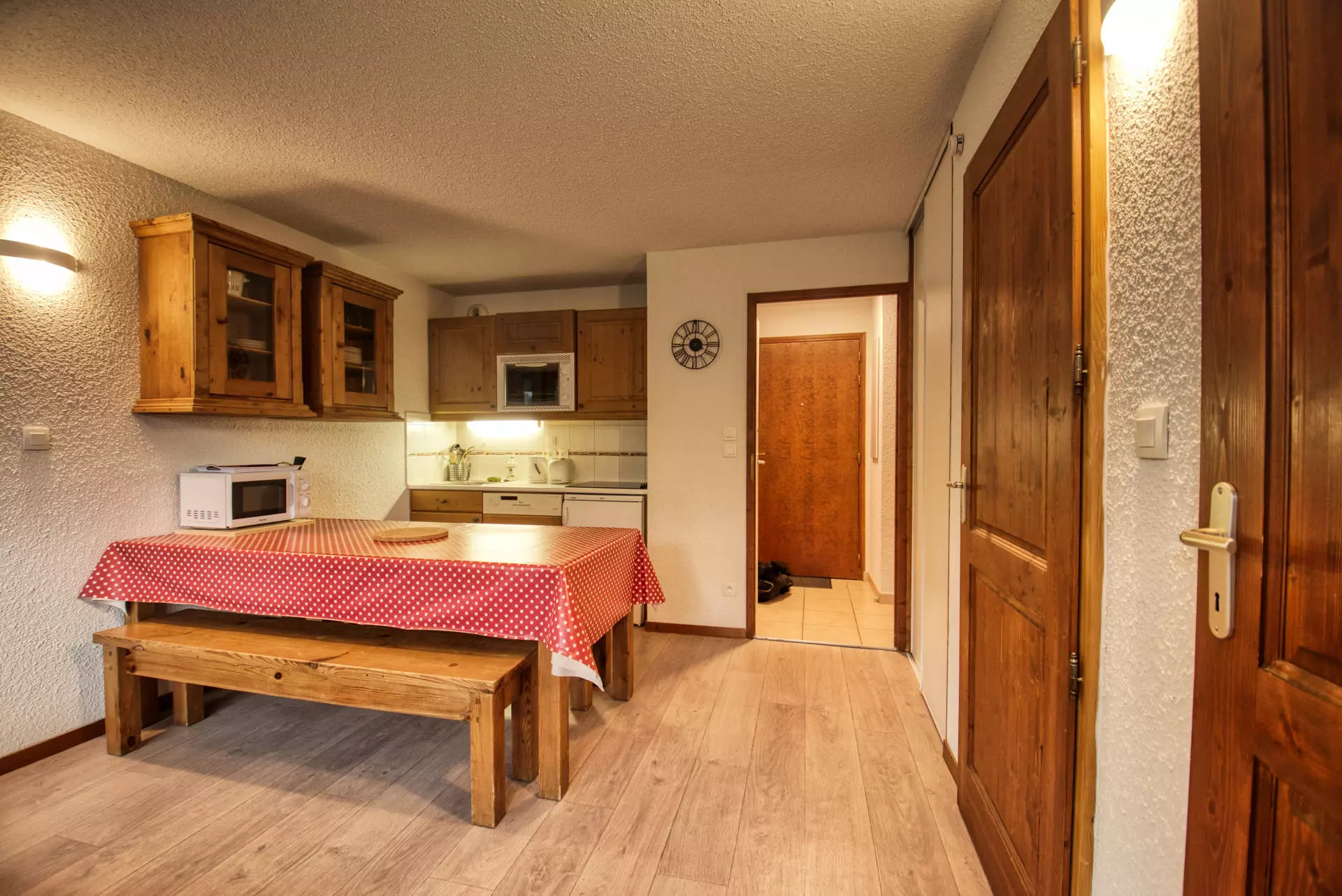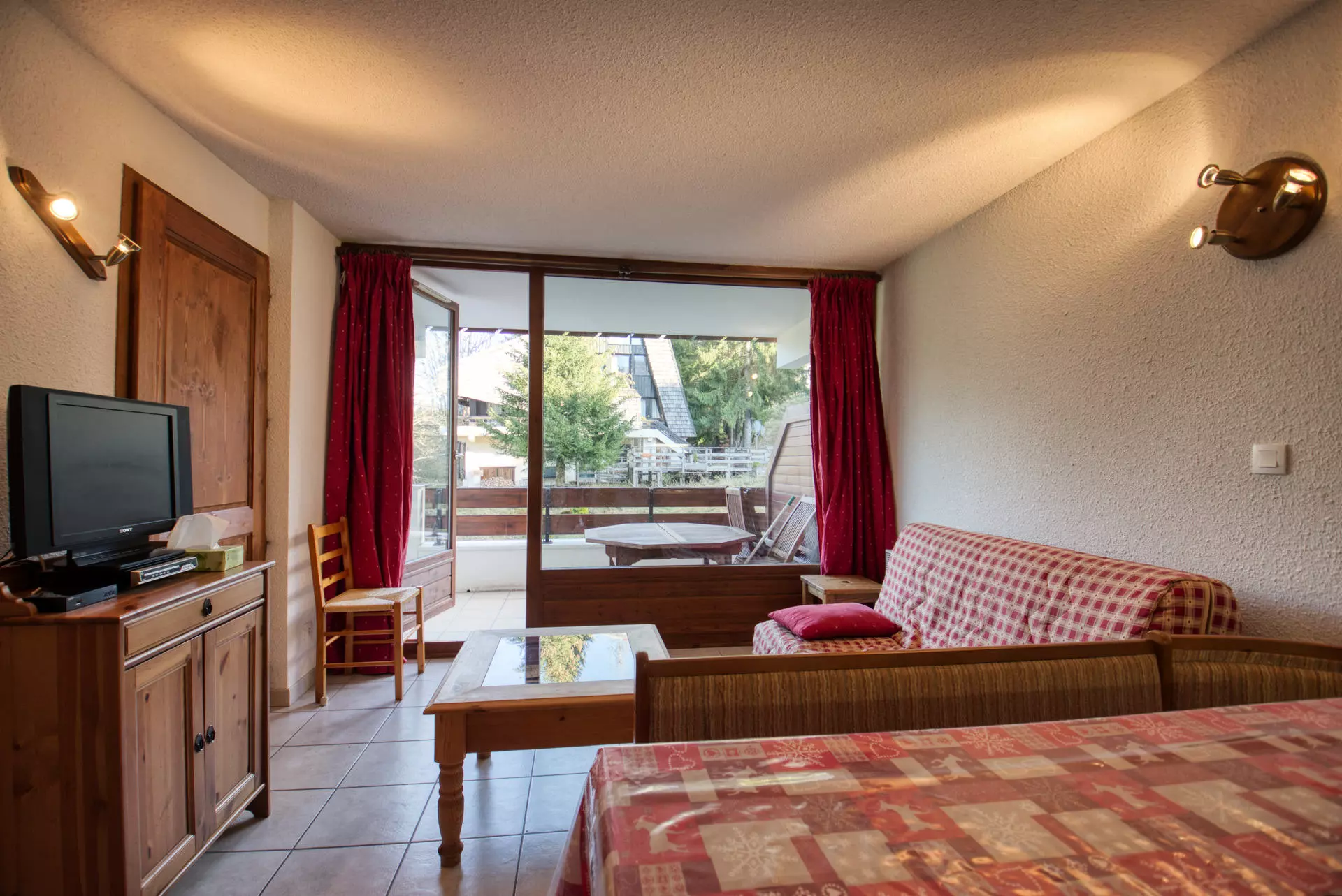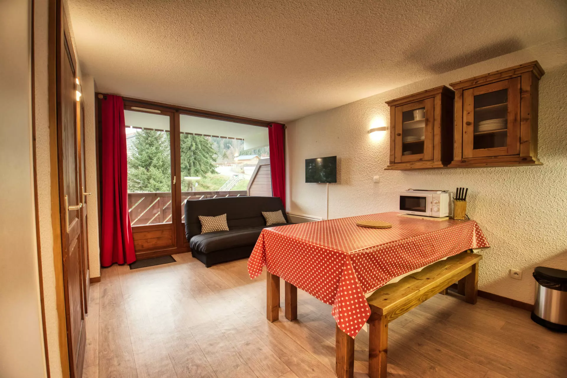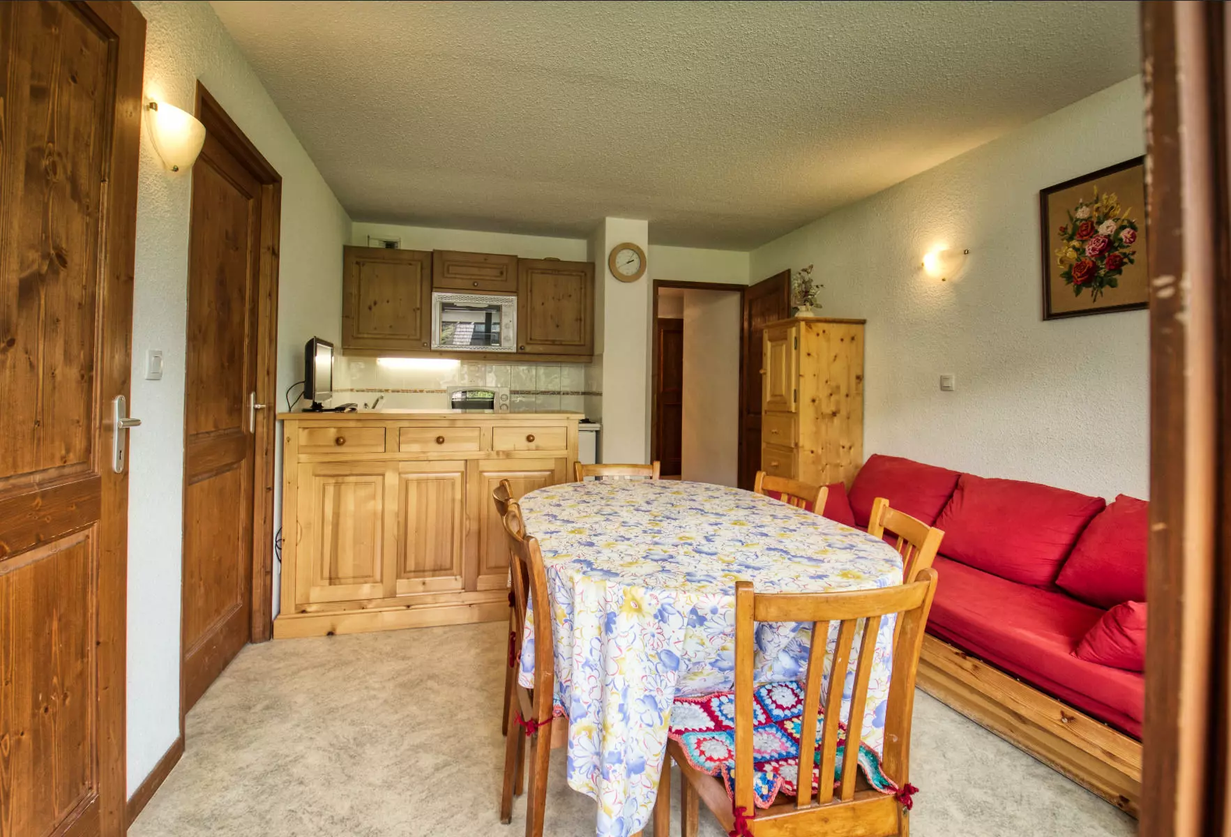 L'appartement se compose d'une entrée avec un placard , d'un coin-montagne , d'une chambre , d'un séjour avec un canapé convertible pour 2 personnes (130x190), d'une télévision et d'un coin-cuisine entièrement équipé. Vous trouverez également une salle de bain avec baignoire et des toilettes.