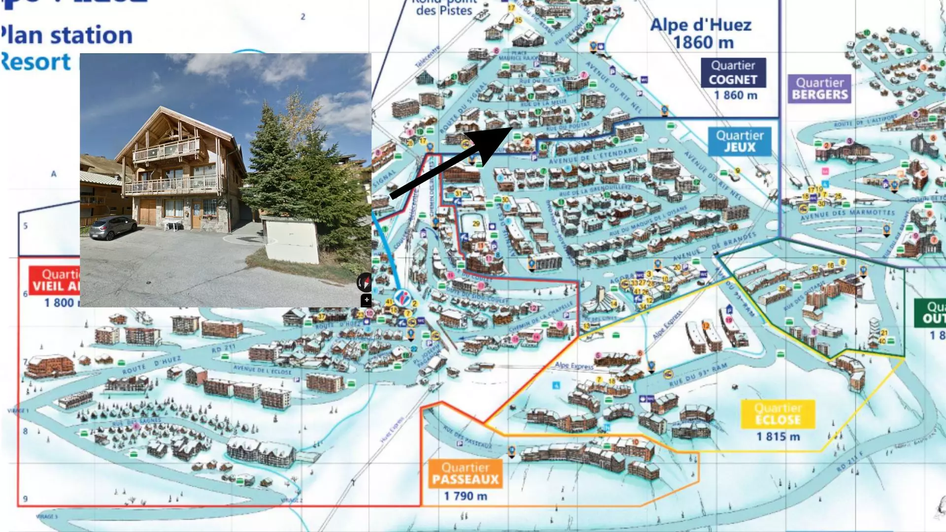 Le chalet IMAYA se situe dans le quartier prisé des Jeux, en pleins centre de la station de l'Alpe d'Huez. L'Avenue des Jeux se trouve à seulement 50m avec tous ses commerces, restaurants et loisirs que proposent la station.