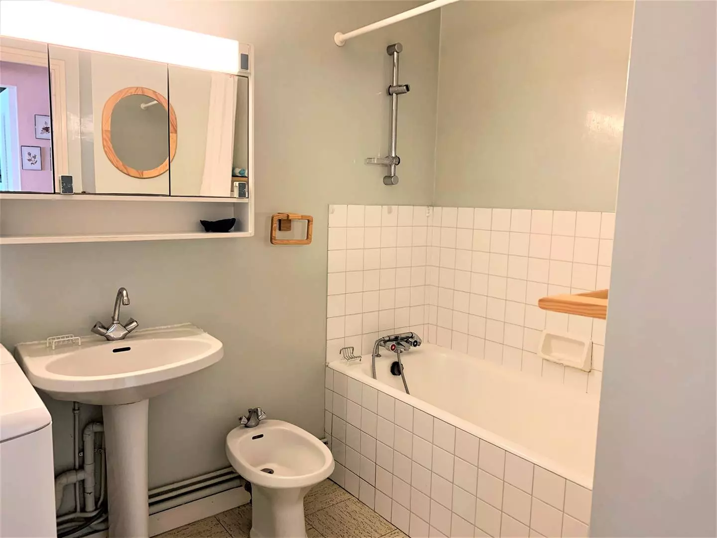 - Une salle de bain avec sèche-serviette,