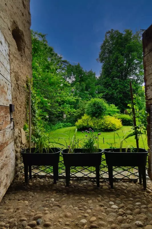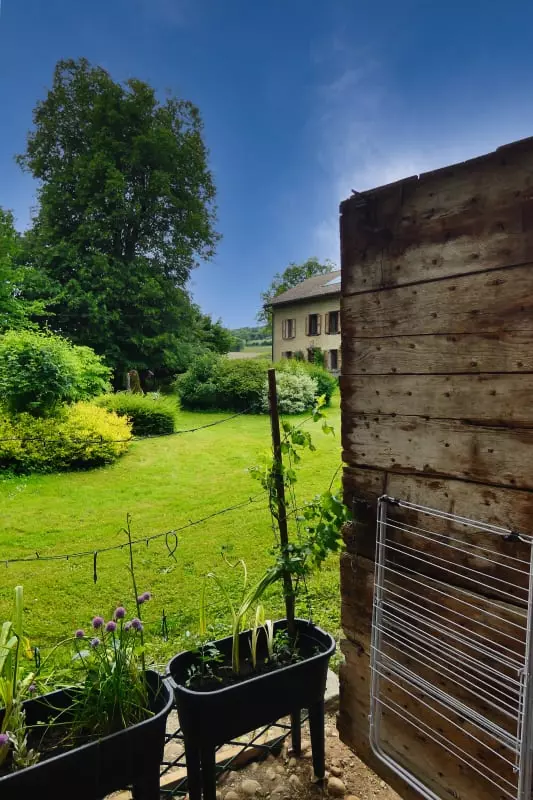 Jardin privatif avec espace pique-nique, barbecue, herbes aromatiques à disposition, le tout dans un calme absolu, au milieu des champs