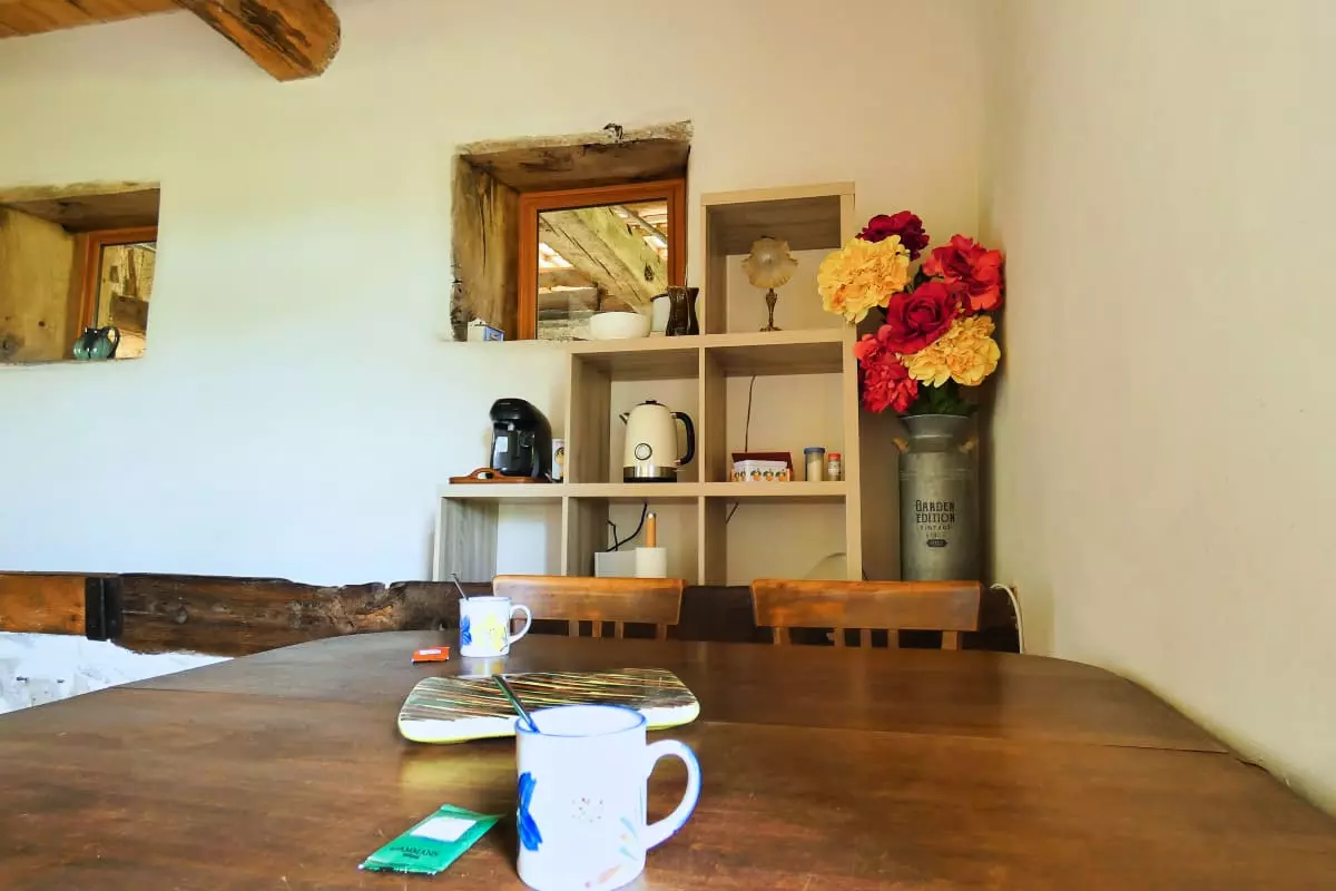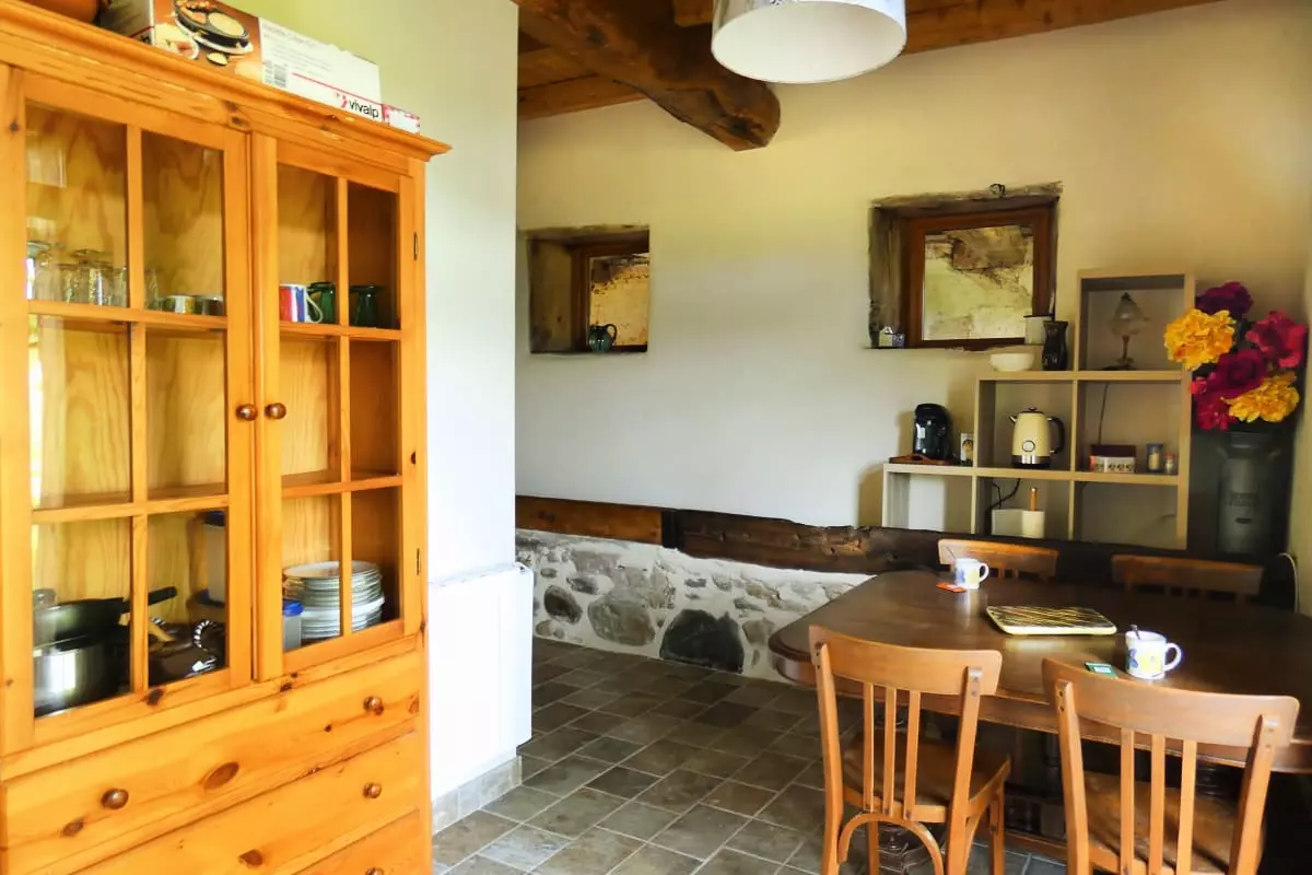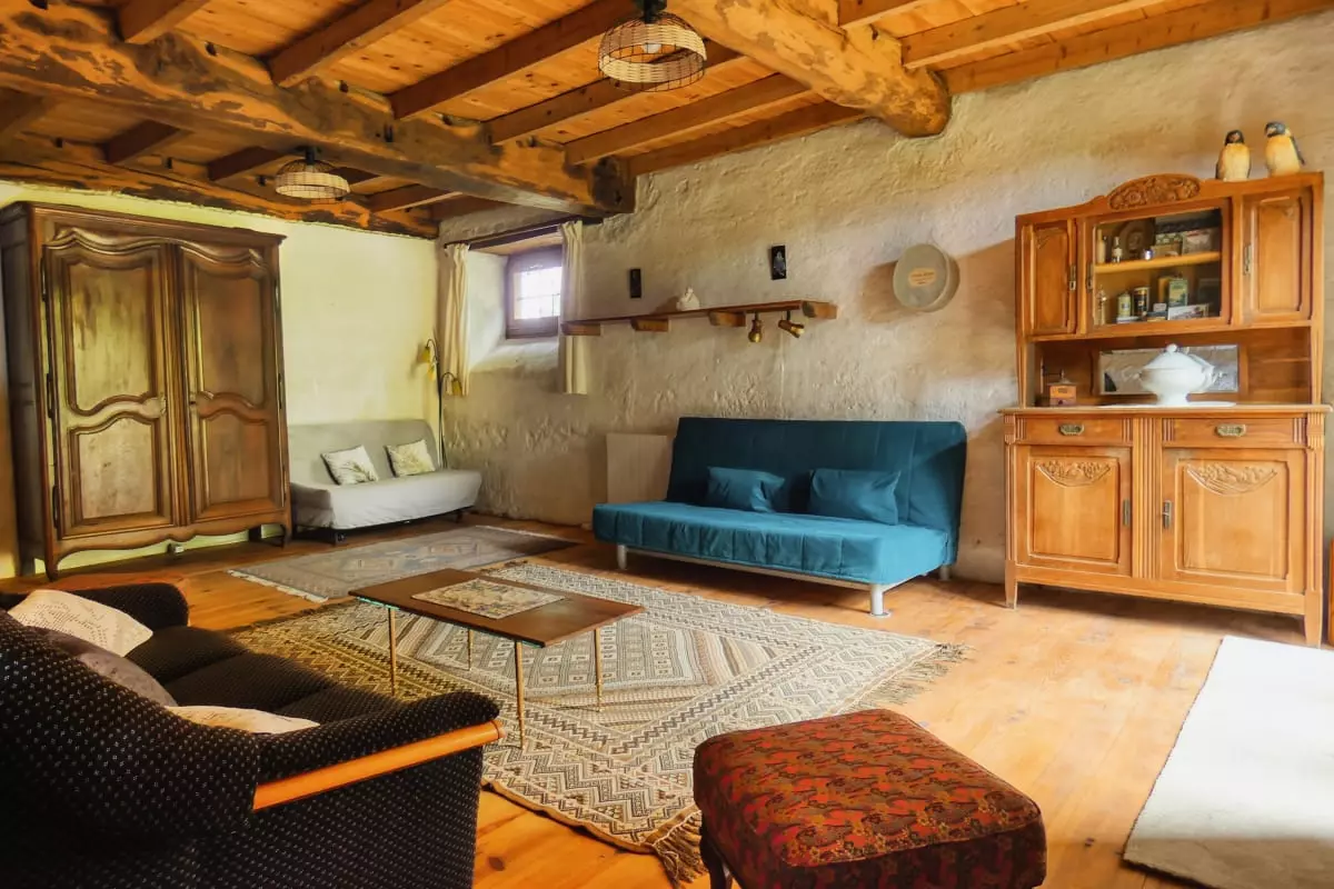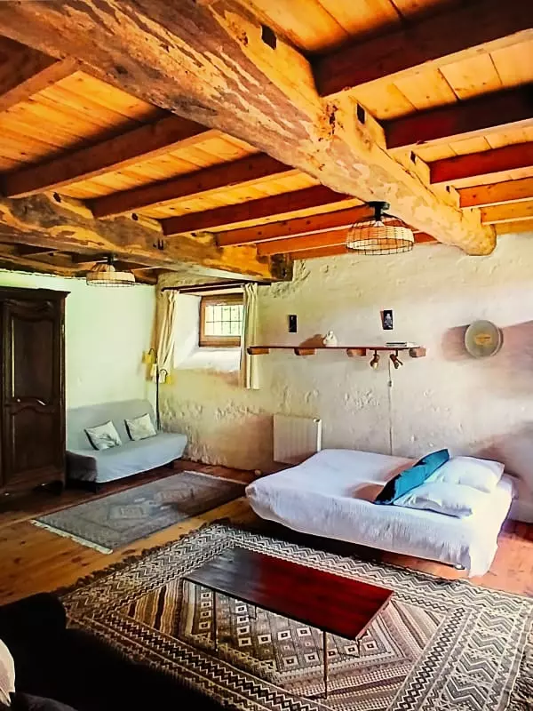 Situé dans un corps de ferme en pisé typique, ce gîte de 60 m², totalement indépendant, a été rénové dans le respect de son histoire : mangeoire conservée et transformée en rangement, détails anciens soigneusement préservés. Les charpentes apparentes de la grange attenante visibles depuis le logement grâce à de petites fenêtres ajoutent encore au charme authentique et à l'ambiance chaleureuse du lieu.
