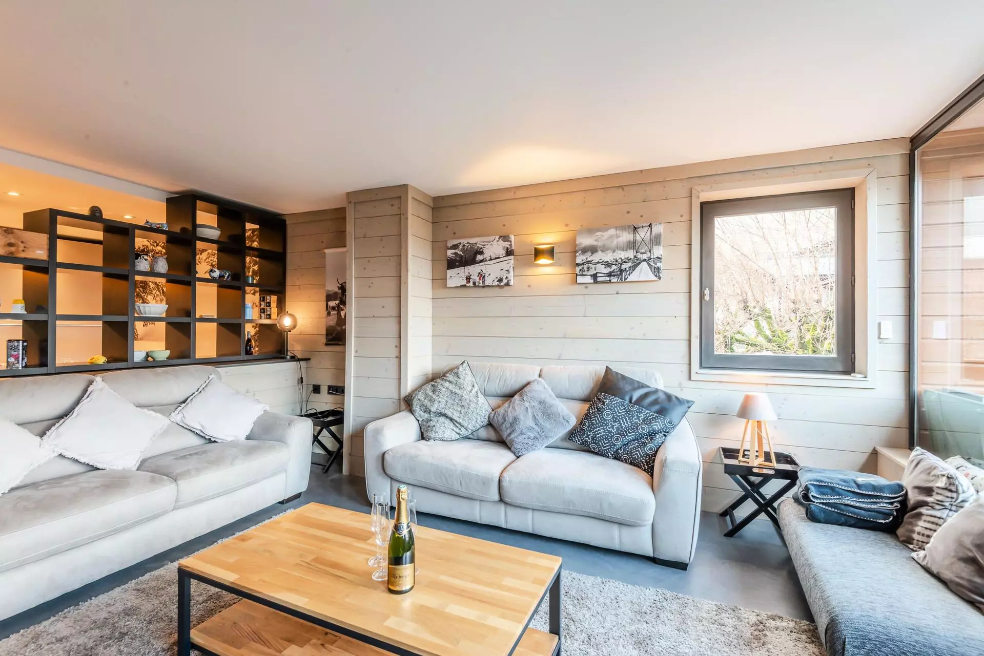 D'une surface habitable de 82 m², exposé Sud Sud-Ouest, il propose une ambiance montagne contemporaine.