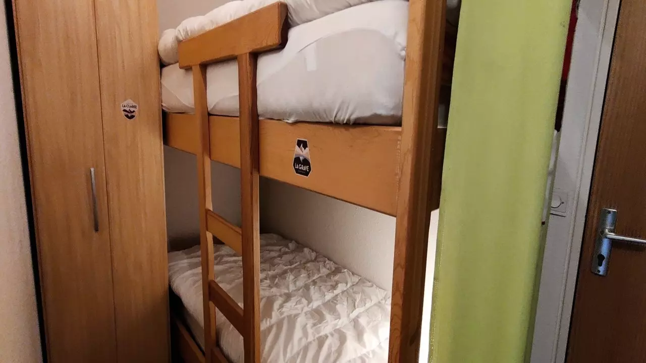 Appartement de montagne avec 4/5 couchages. Il se compose d'une entrée, d'un coin montagne avec un lit superposé, donc deux lits simples, séparé par un rideau, une salle d'eau avec douche et lave-linge, un WC séparé, une chambre avec un lit double en 140 et placards. Le séjour avec un canapés-lit 1 lit simple (90), la cuisine est équipée d'un réfrigérateur, four, cafetière à filtres, plaques à induction, lave-vaisselle... Une agréable terrasse avec jardin (table et chaise de jardin à disposition) exposée pleins SUD, pour profitez d'un repas ou d'un moment détente au soleil. Un casier à ski. Un parking se situe face à la résidence.