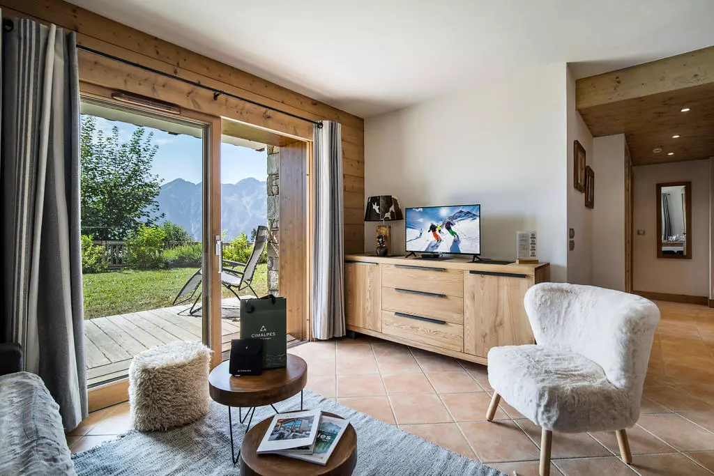 La résidence "La Perle des Alpes" à Bisanne 1500, située dans le domaine skiable de l'Espace Diamant, offre un cadre idyllique au cœur des Alpes. Construite dans un style savoyard mêlant bois et pierre, elle propose 85 appartements modernes et confortables avec balcons ou terrasses offrant une vue imprenable sur le Mont-Blanc. Idéale pour un séjour skis aux pieds en hiver ou pour profiter des sentiers de randonnée en été, la résidence est dispose également d'une piscine pour se détendre face aux montagnes.