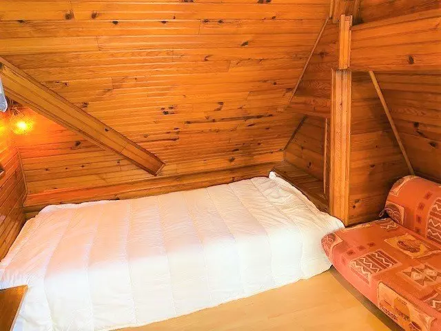 - d'un coin couchage mansardé avec un lit individuel de 90cm pour un enfant,