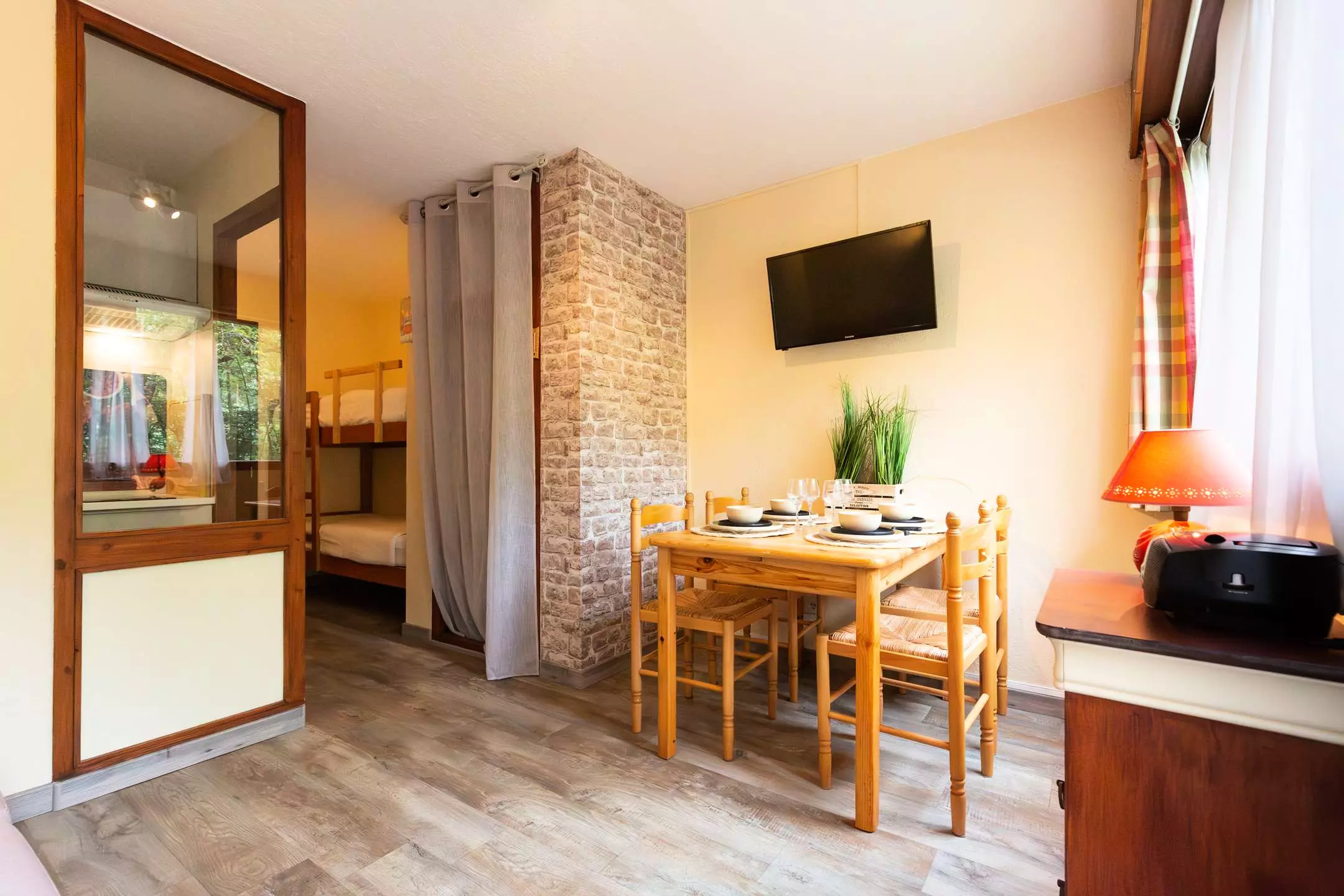 Entrée couloir avec 2 lits 1 place superposés,