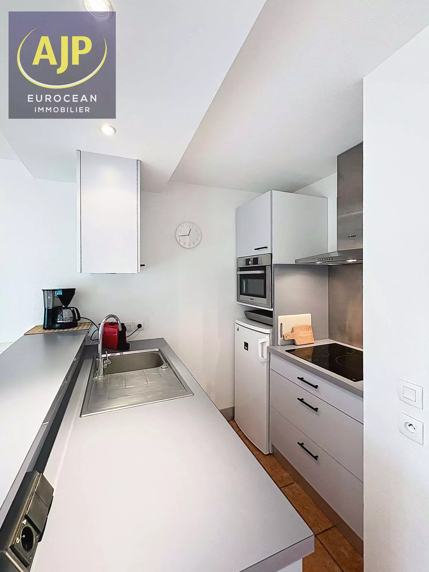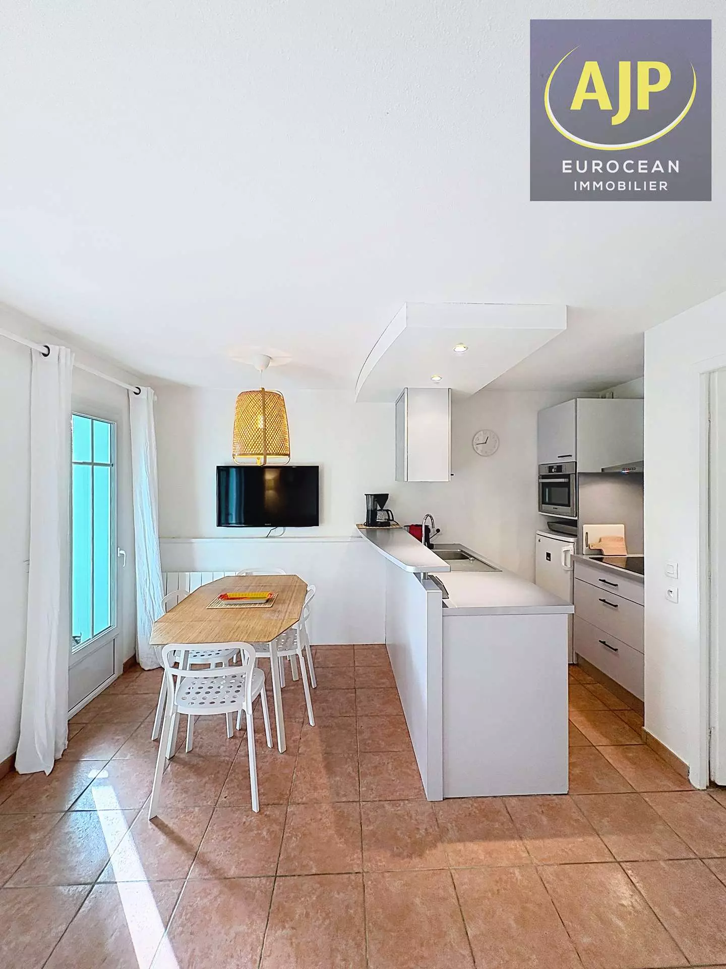 Appartement T2 situé au 2ème étage se compose d'une entrée donnant sur une chambre indépendante avec lit double (140), d'une salle de bain avec baignoire et d'un WC séparé. La pièce à vivre est dotée d'un coin cuisine avec lave-vaisselle, d'un espace salon, salle à manger avec une table, deux canapés convertibles (90), un lit gigogne en 90, et d'une télévision.