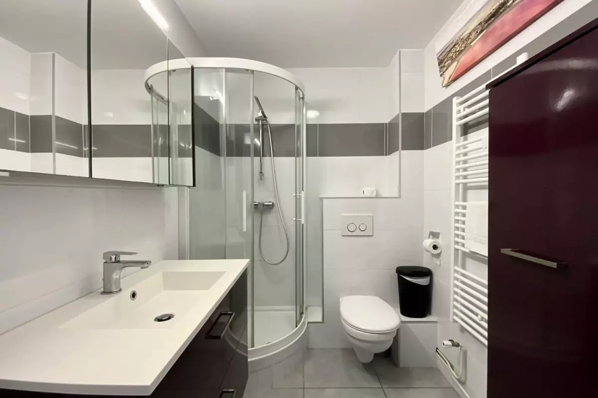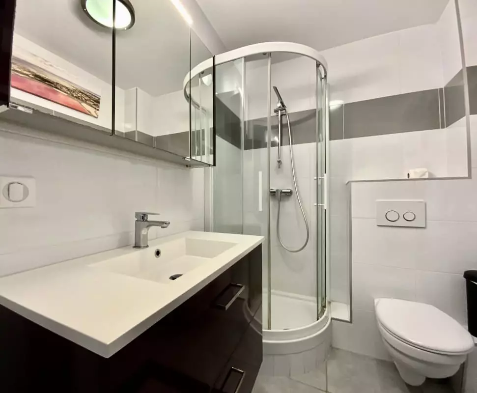 L'appartement dispose d'une salle d'eau avec douche et un WC non séparé.