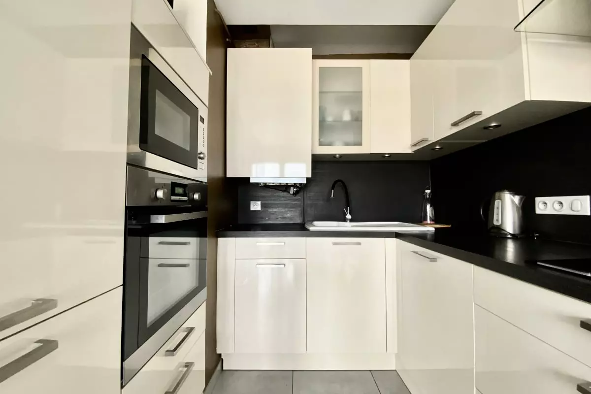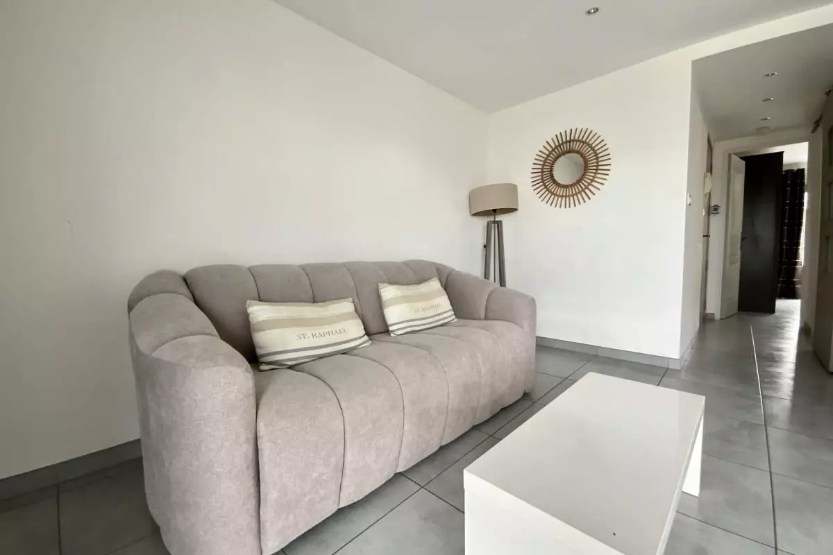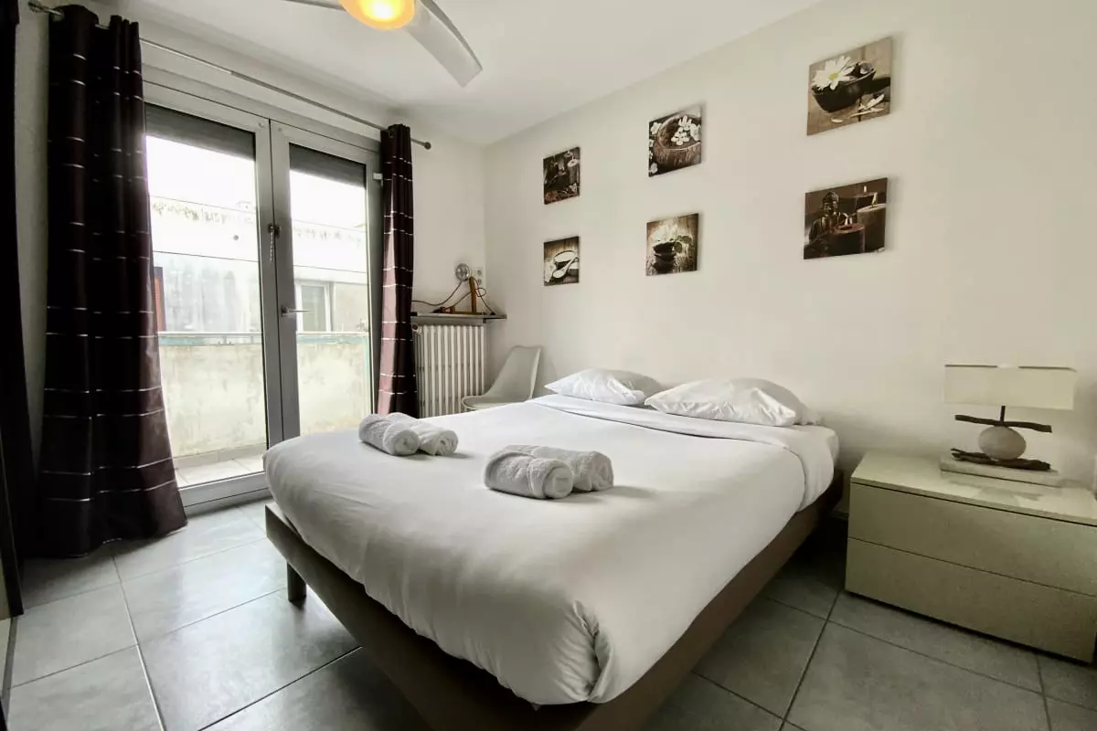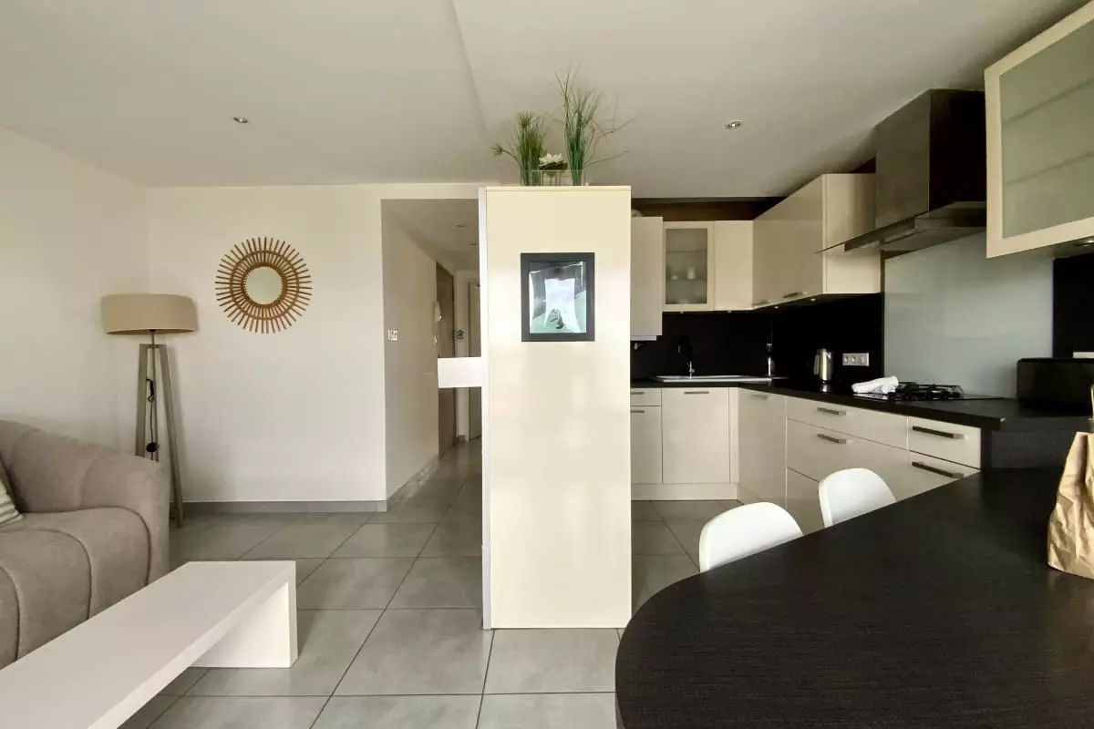 La pièce de vie est agréable, baignée de lumière, avec un canapé convertible, une TV et la climatisation. Vous pourrez apprécier le calme et vous reposer dans la chambre chaleureuse à la décoration épurée.