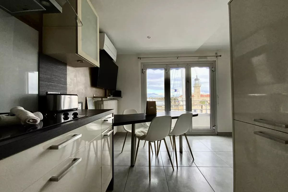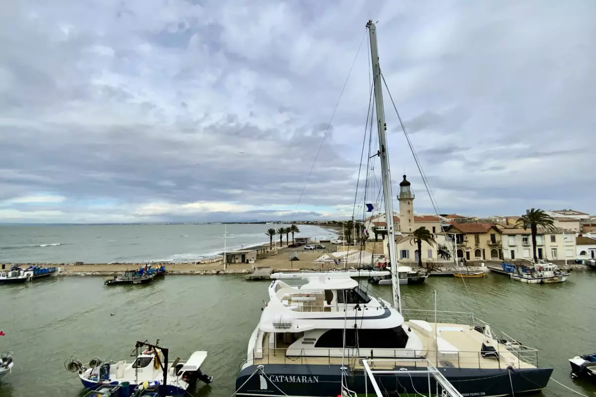 Cet appartement se trouve sur le quai Colbert du Grau du Roi, lieu identitaire et emblématique marquant l'entrée dans le Port de Pêche. Face au vieux Phare, face à la mer, il n'y a pas de plus bel emplacement pour vivre la vie locale, voir les chaluts partir en mer et revenir de la pêche, regarder les petits métiers trier le poisson et mettre leurs étals en place. Un formidable lieu de vie