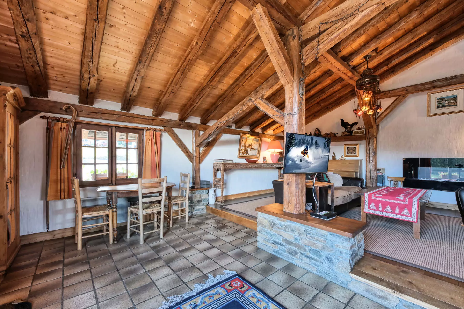 - Salon avec la télévision et une cheminée