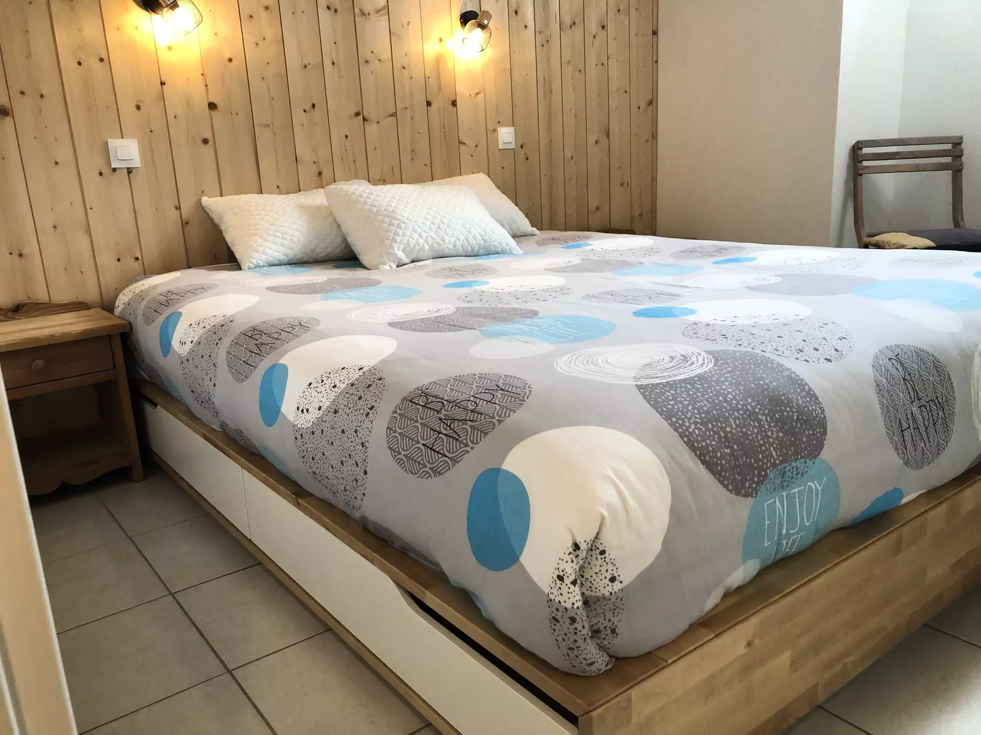 Dans la chambre, vous disposerez d'un lit double 140 x 190 cm avec un lit simple superposé. Une salle de bain avec baignoire et un WC séparé viennent compléter l'ensemble.