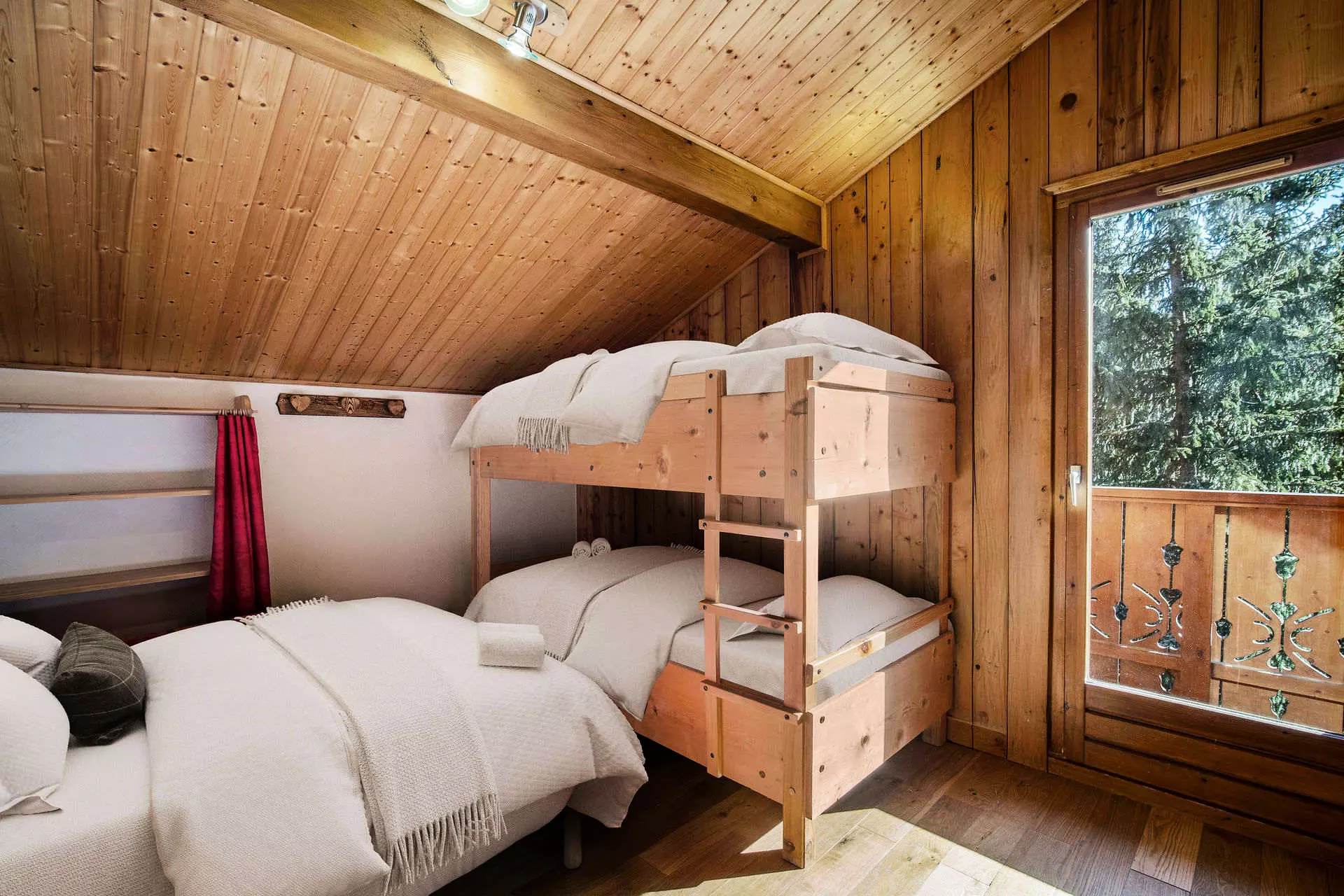- 1 chambre avec un lit double et un lit superposé,