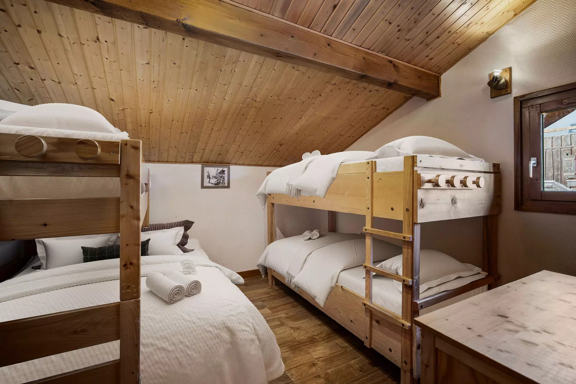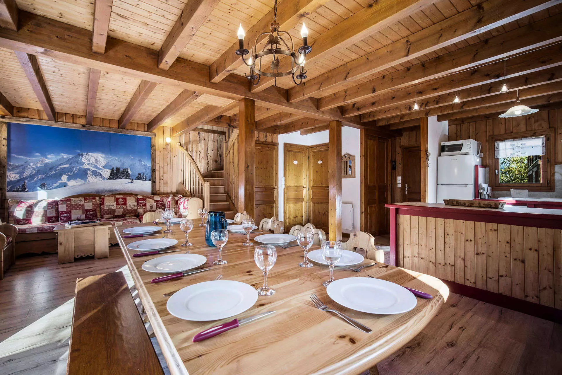 Authentique chalet d'inspiration savoyarde, alliant élégance alpine et charme traditionnel, pouvant accueillir confortablement jusqu'à 13 convives (6 adultes et 7 enfants).