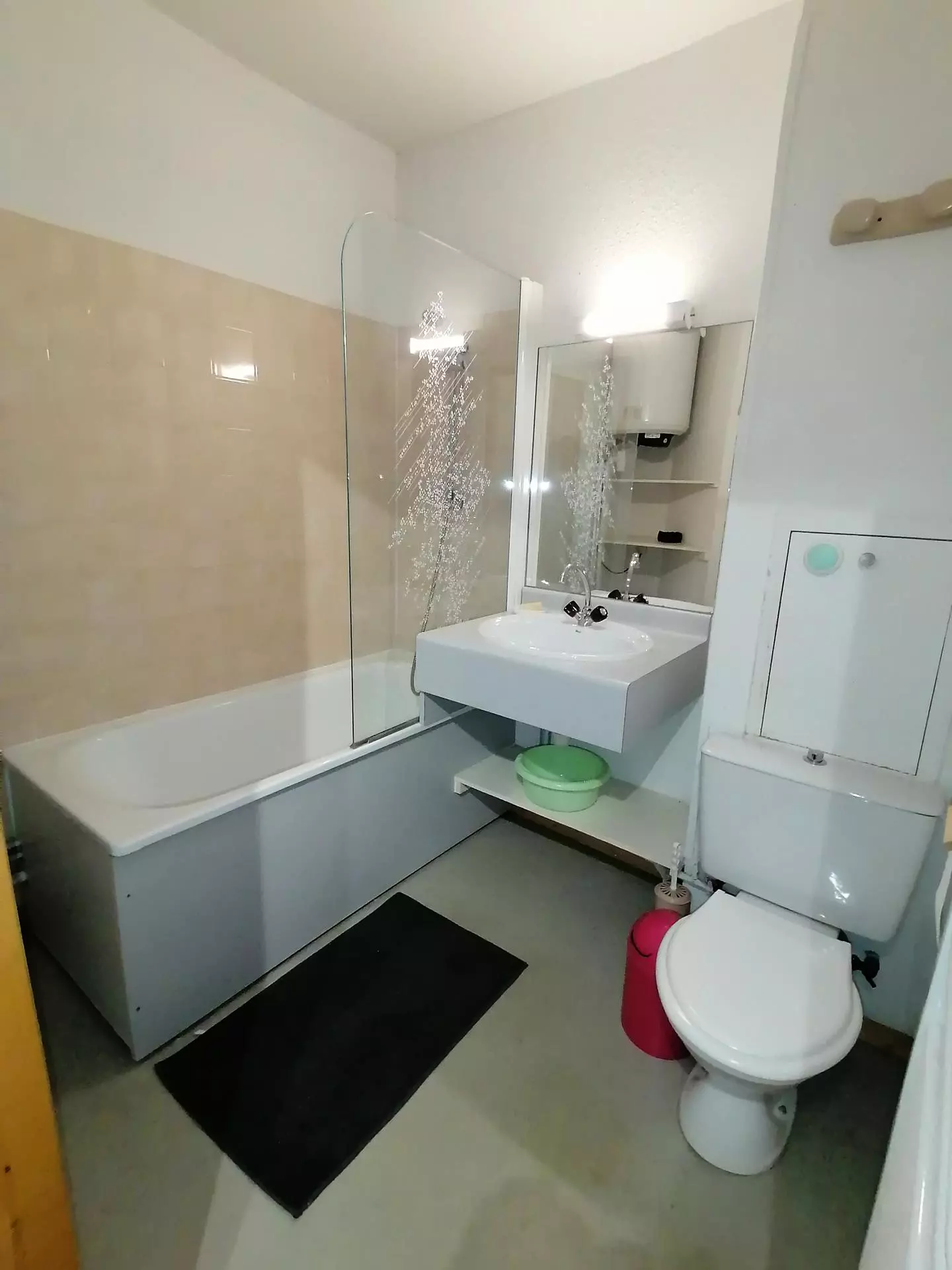 La salle de bain possède 1 lavabo et 1 baignoire. WC séparés.
