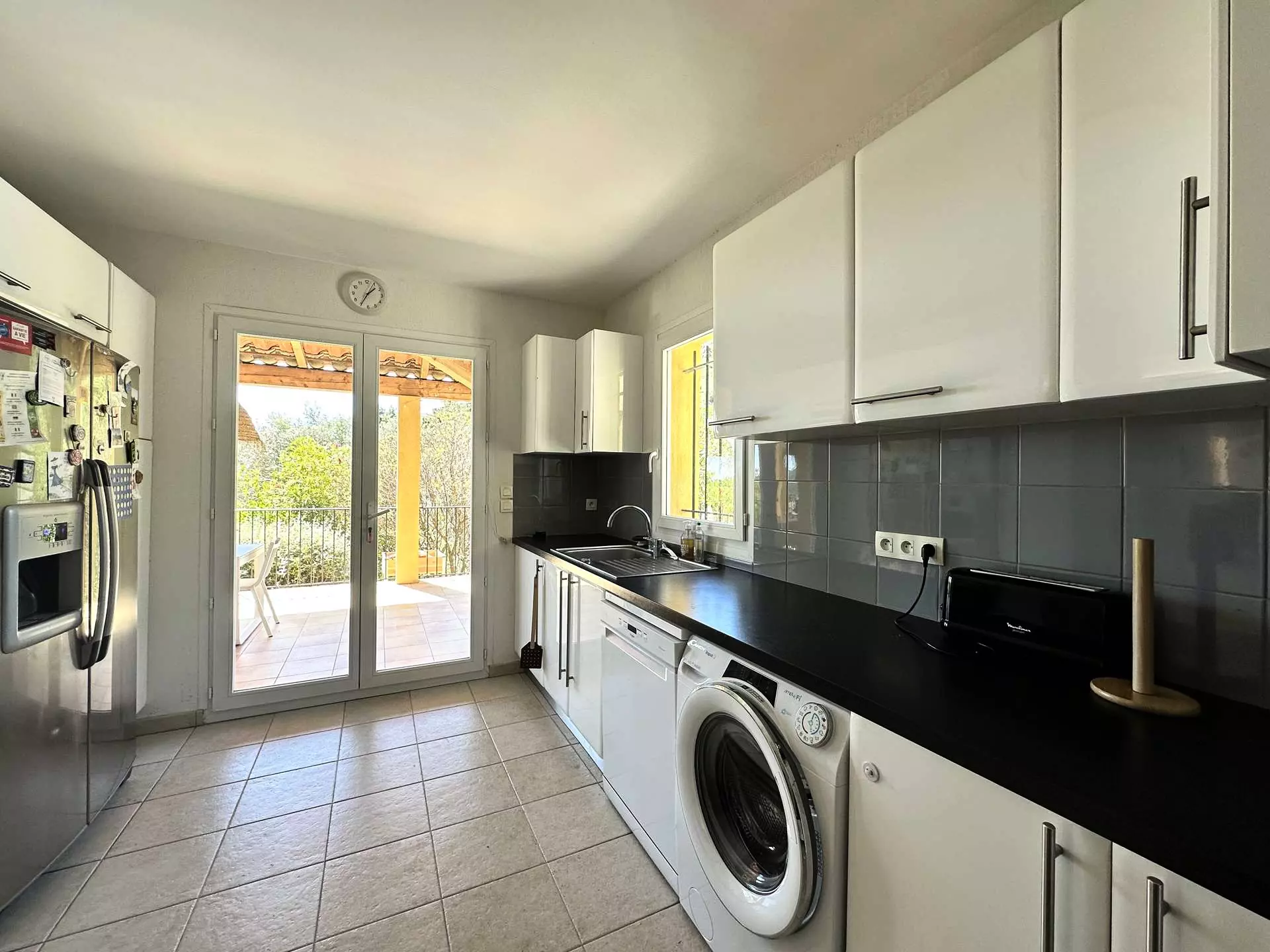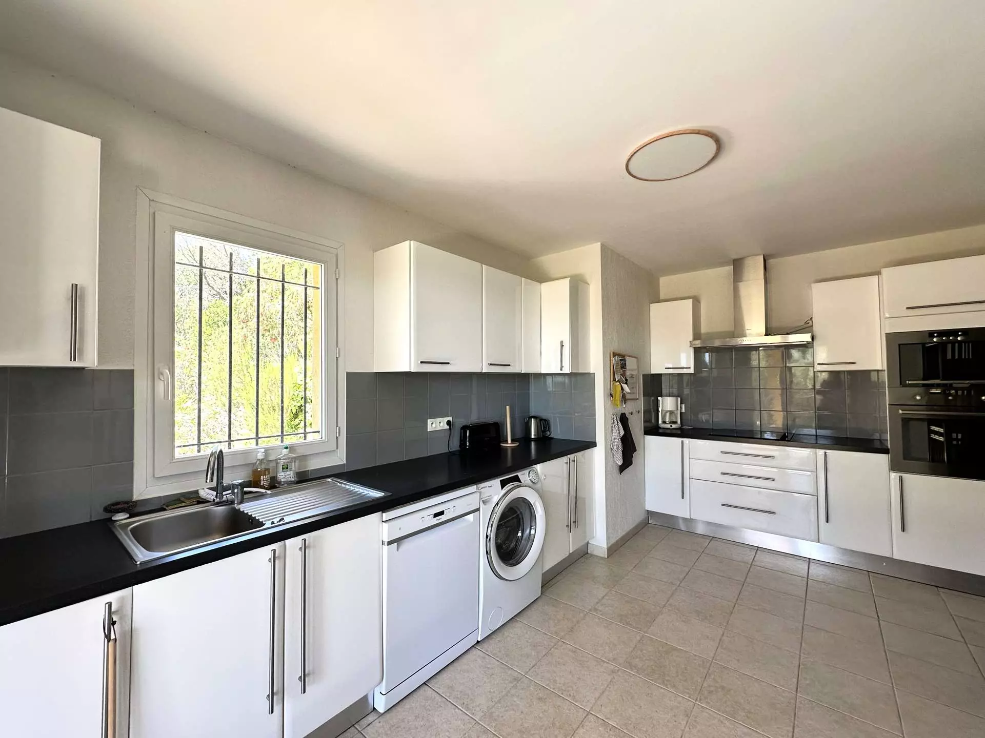 La villa est sécurisée par un portail automatique, et plusieurs véhicules peuvent se stationner dans l'enceinte.