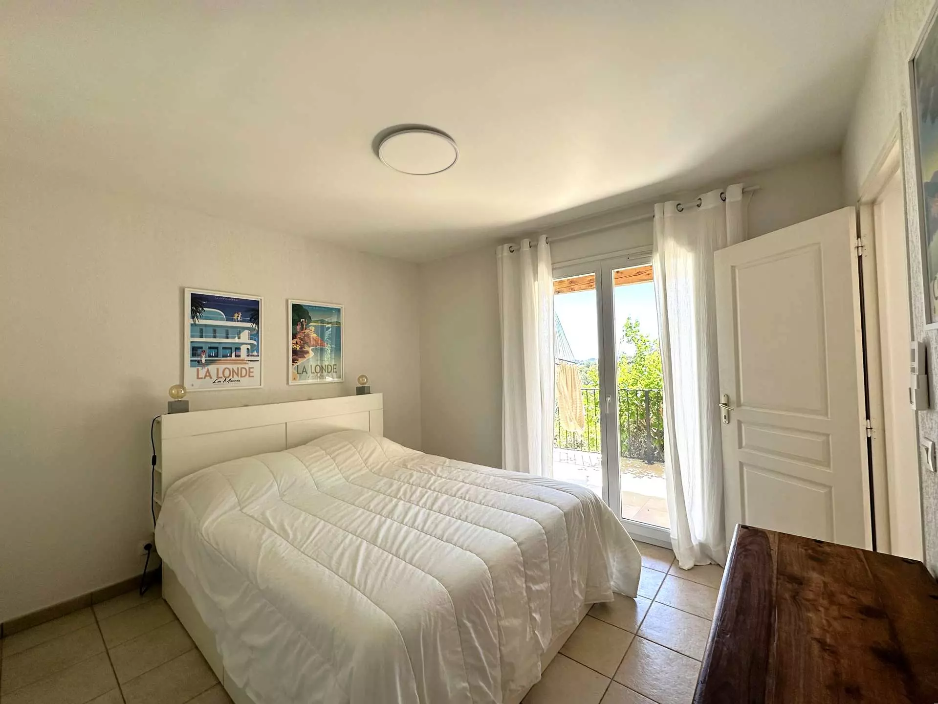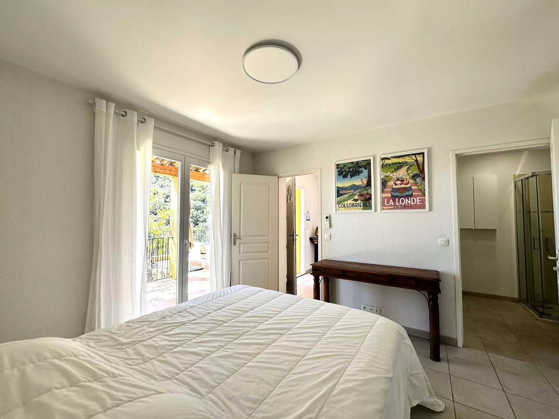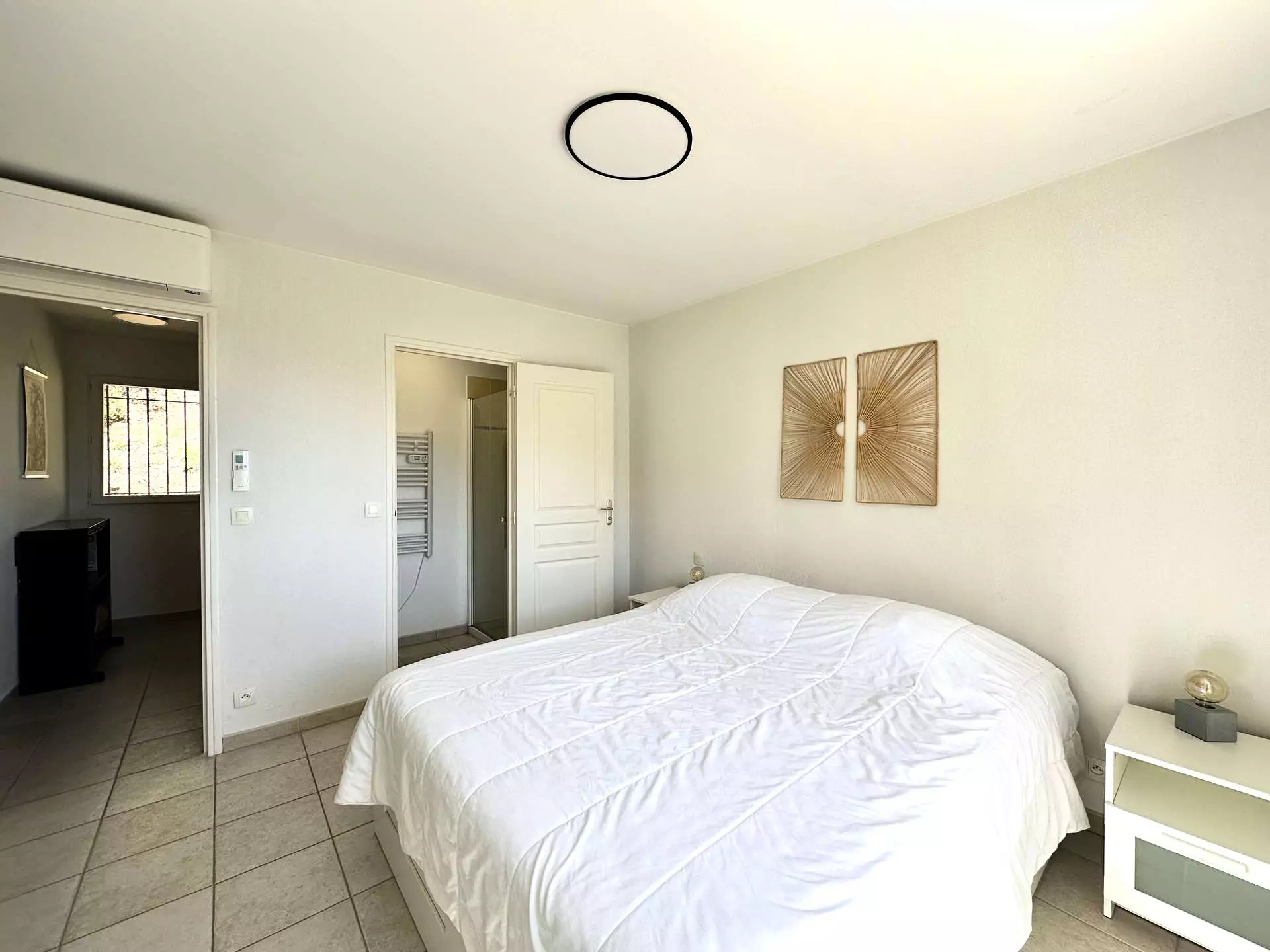 Une quatrième chambre avec un lit Queensize (160*200), une salle de douche avec WC et une belle terrasse privative (vue mer).