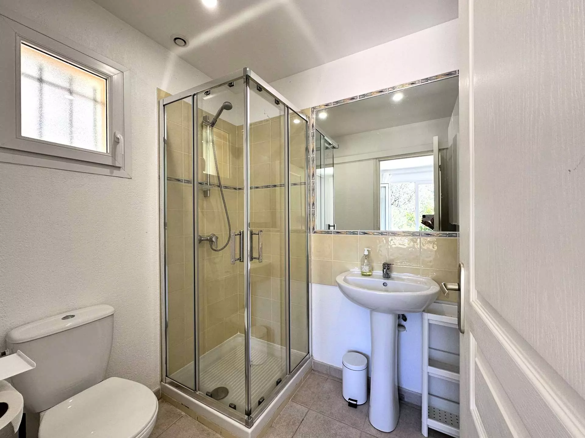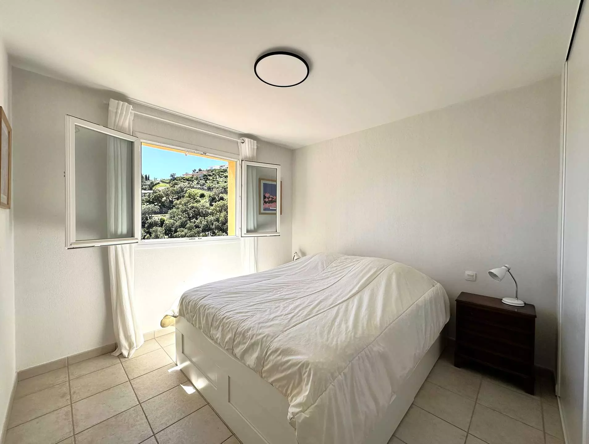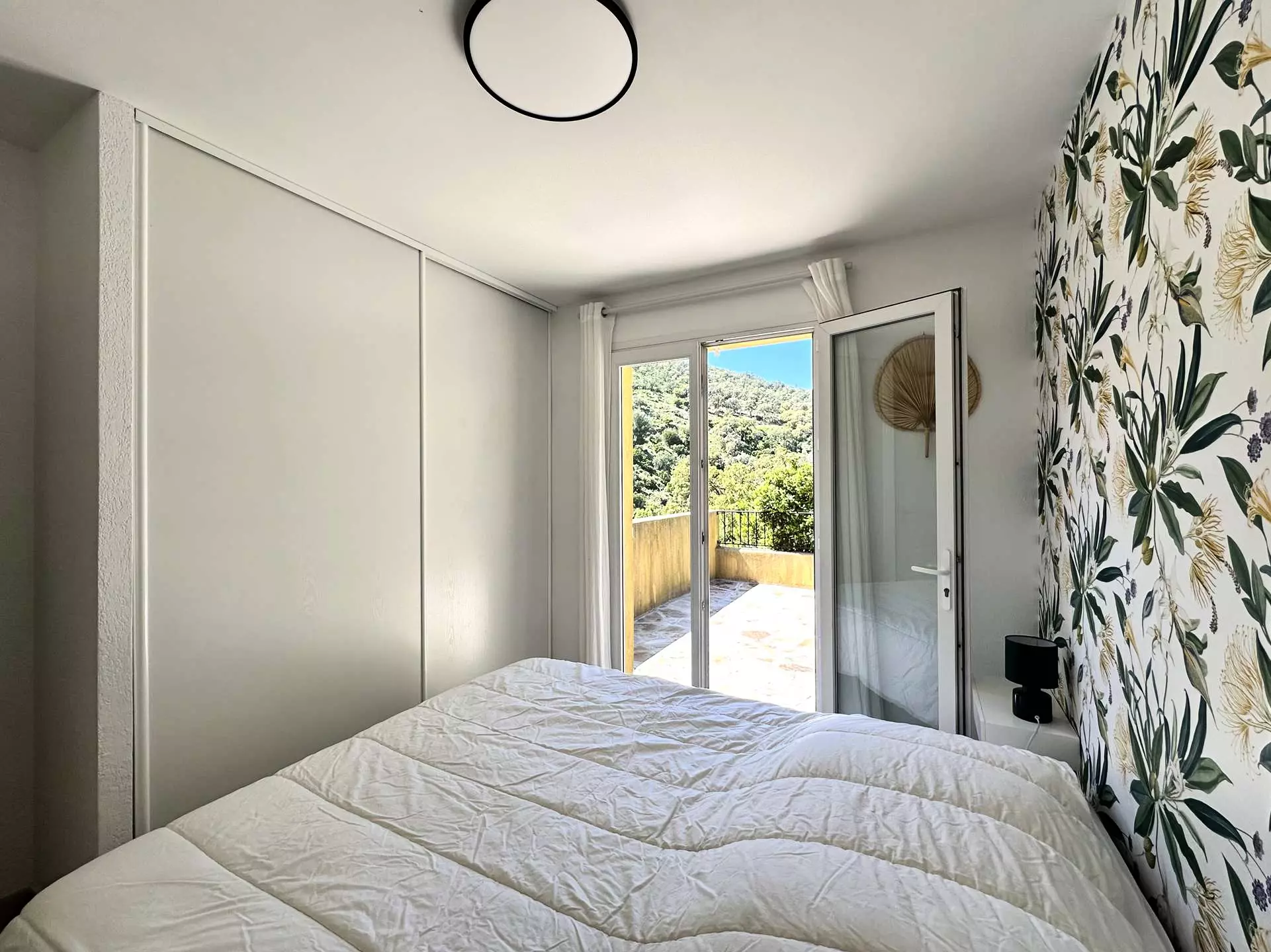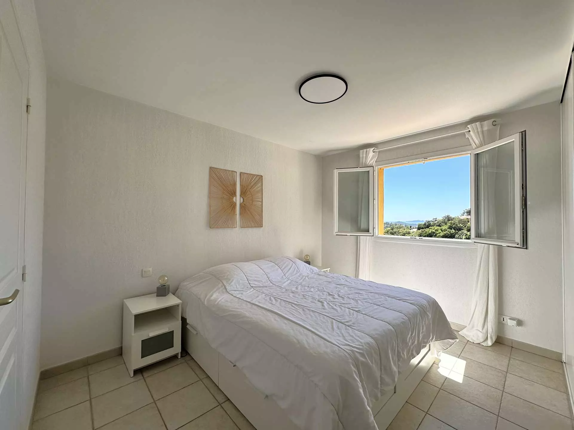 Une quatrième chambre avec un lit Queensize (160*200), une salle de douche avec WC et une belle terrasse privative (vue mer).