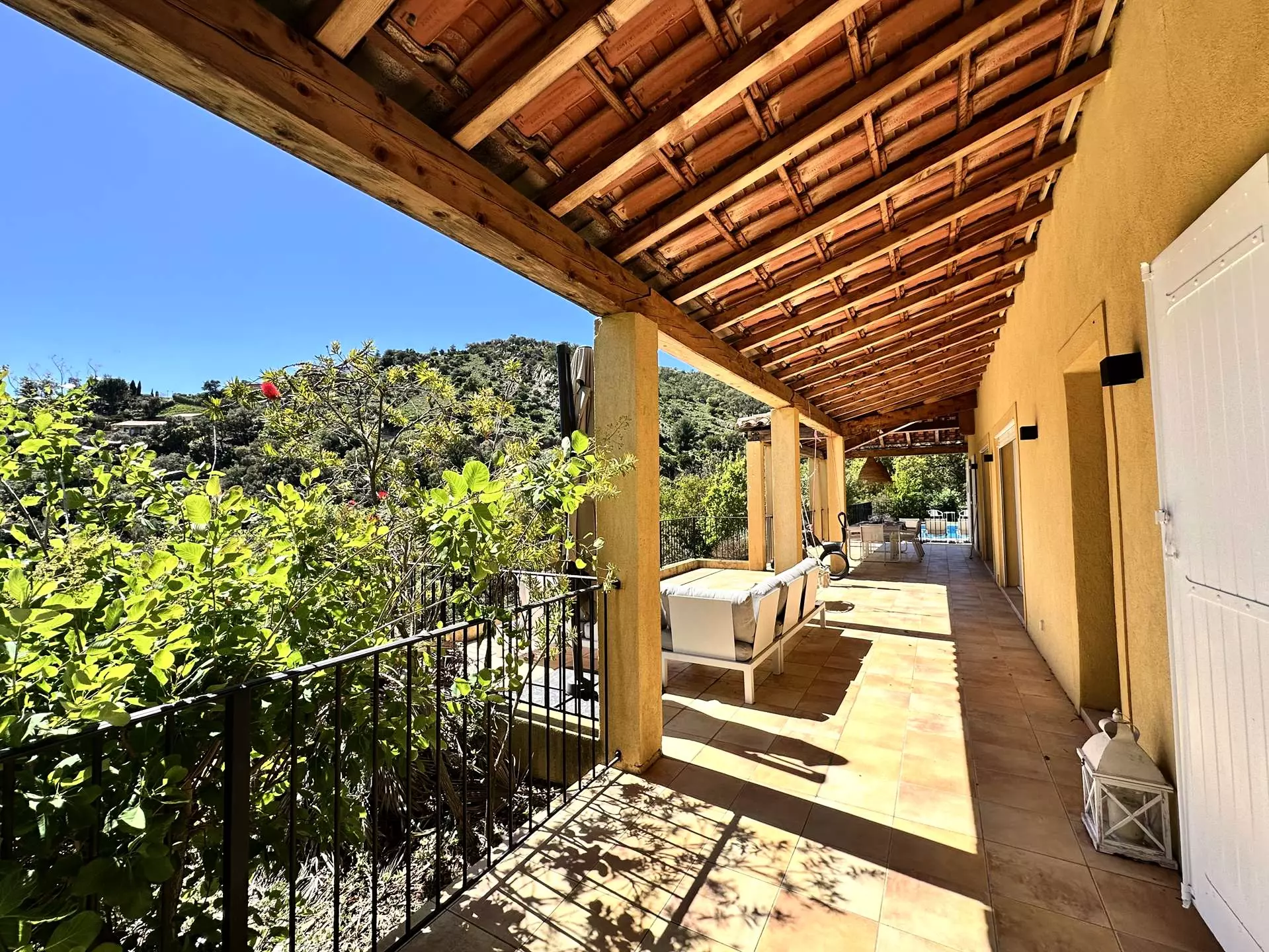 Dans un domaine privé et sécurisé sur les collines de Valcros, cette jolie villa provençale offre une vue sur les collines boisées du massif des maures et une petite vue sur l'île de Porquerolles depuis ses larges terrasses. Les superbes plages de sable de l'Argentière, Cabasson, l'Estagnol sont à quelques minutes seulement. A quelques kilomètres de Hyères, Bormes Les Mimosas, Le Lavandou, Saint Tropez, le circuit du Castellet...