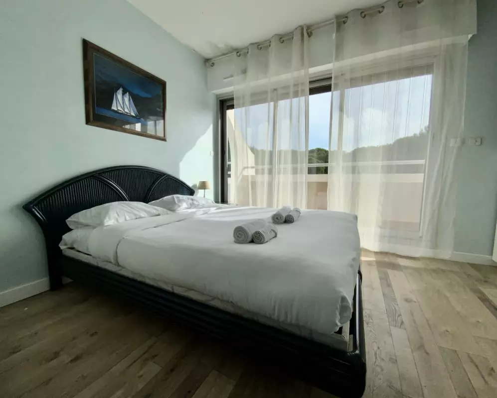 L’appartement Le Flamant est situé au 2ᵉ et dernier étage (sans ascenseur) d’une résidence calme et sécurisée. Il dispose de deux chambres accueillantes :