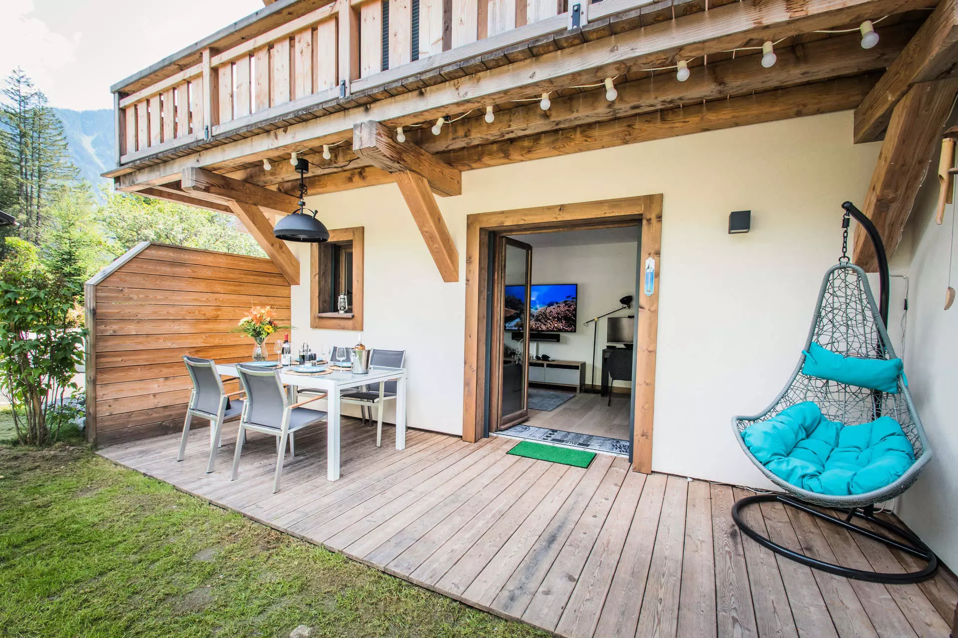 - Terrasse de 15m² équipée d'un salon de jardin et un jardin de 50m² privatif