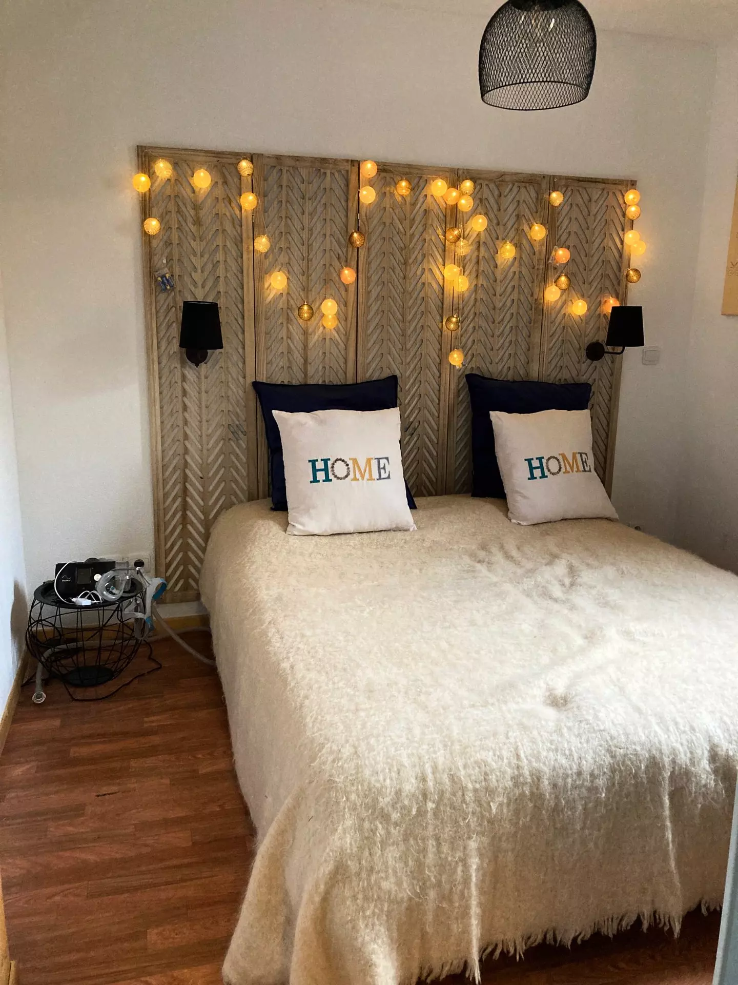 Chambre 1 : 1 lit double 160cm + 1 lit superposé 2 lits simples (coin nuit).
