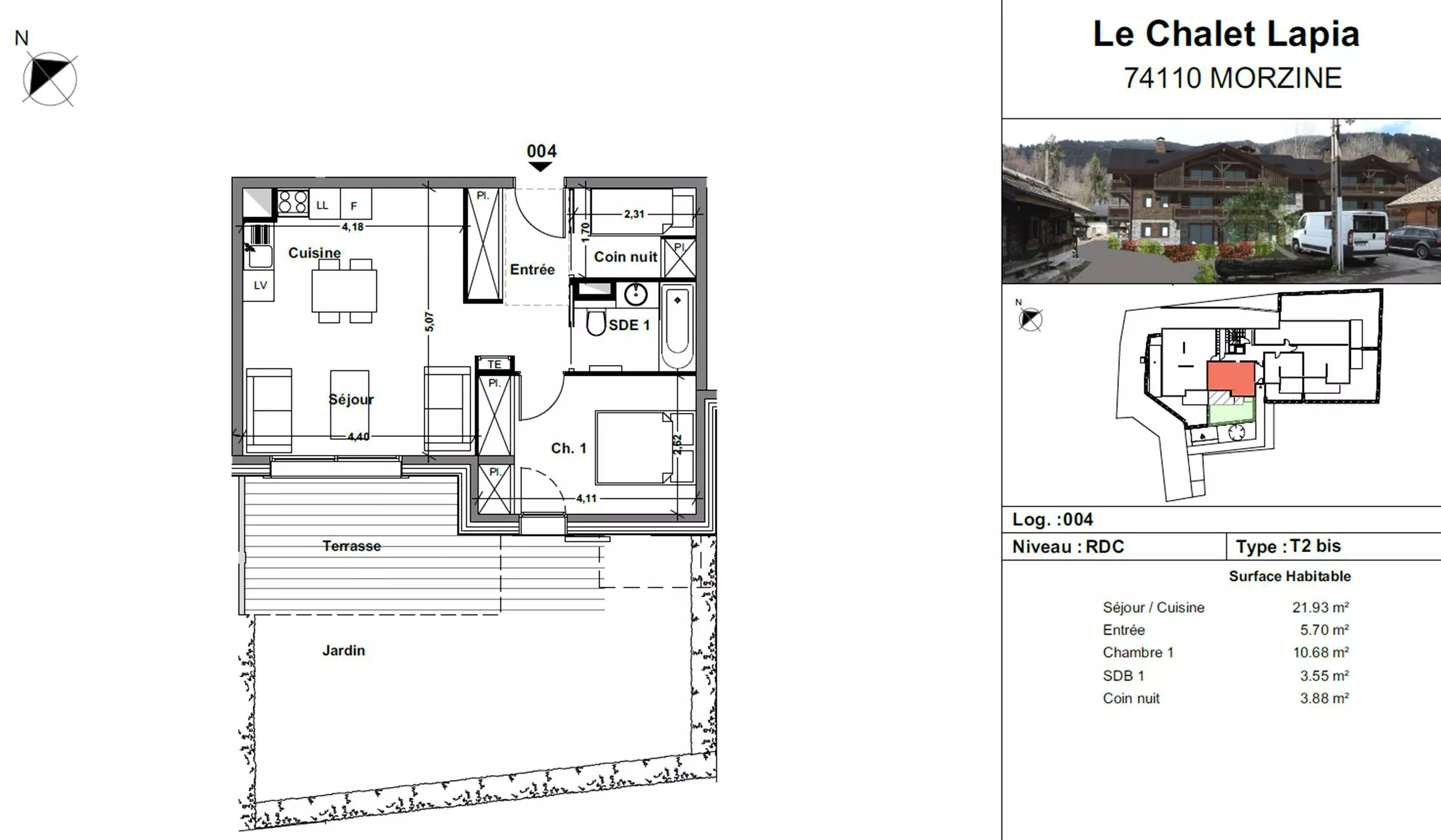 Lapia 1 : T3 + cabine neuf avec jardin au calme proche du centre de Morzine