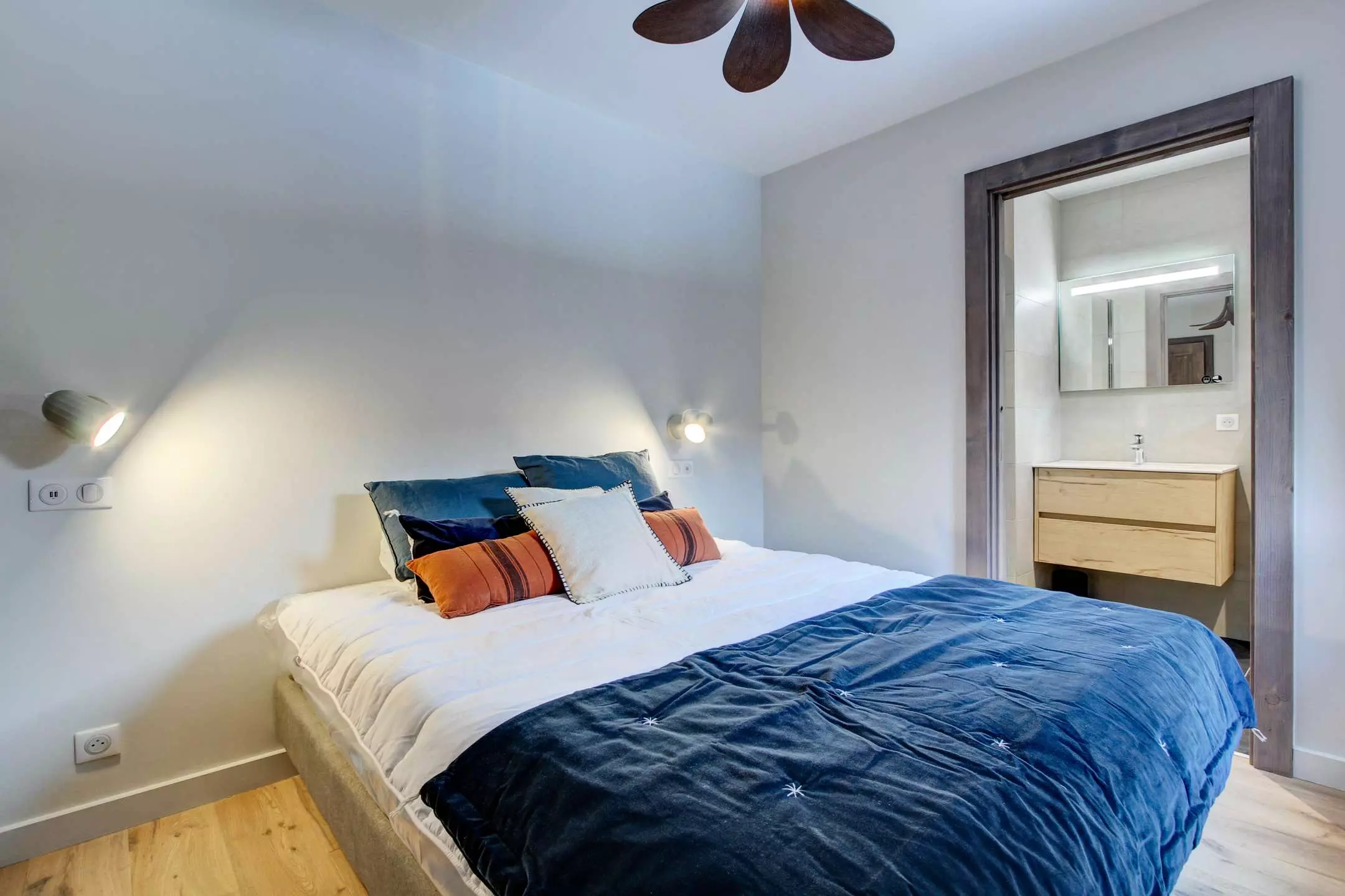 - Une chambre avec deux lits simples pouvant être rapprochés en lit double, salle de douche en-suite + WC