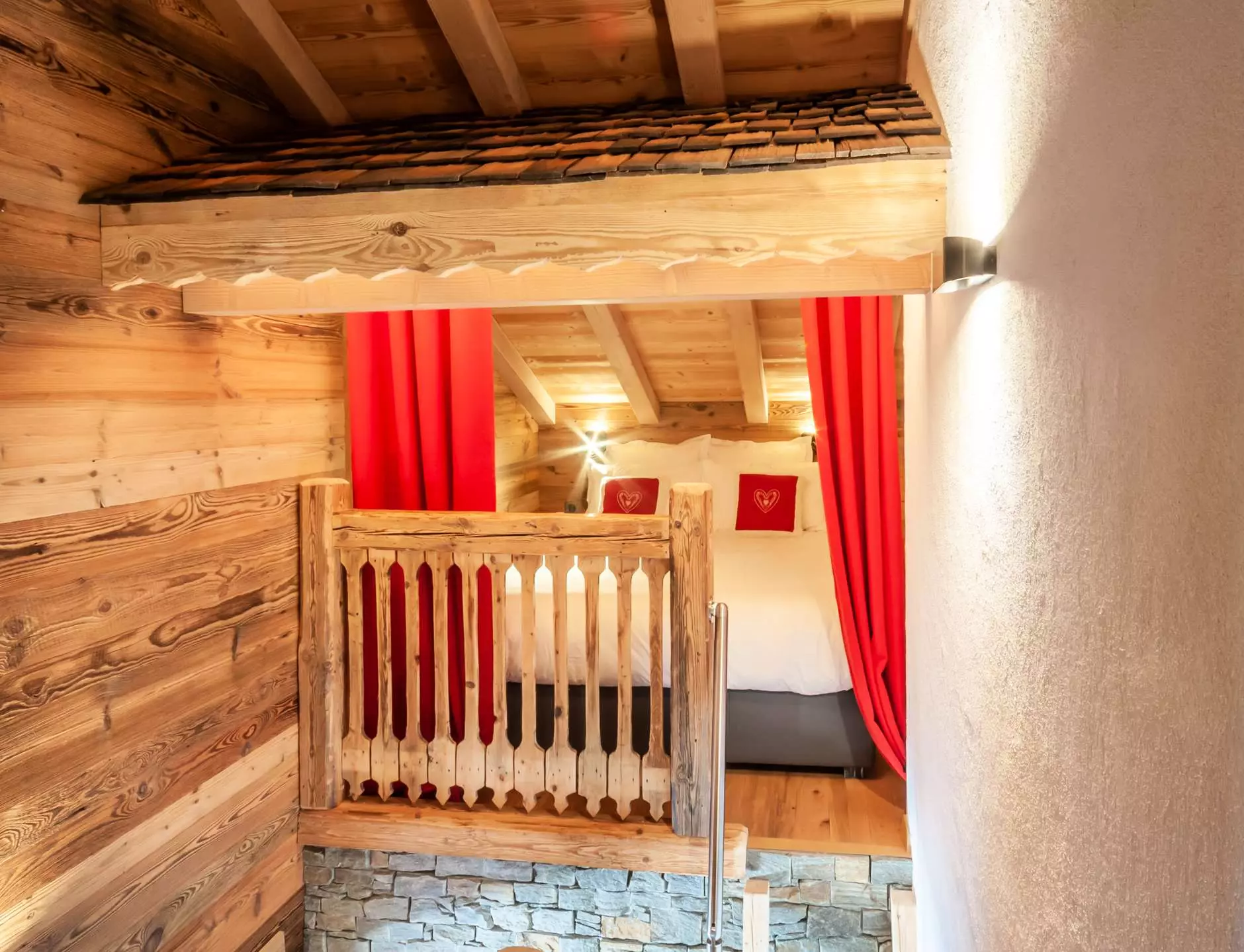 Etage : coin couchage en mezzanine avec un lit double (160x200)