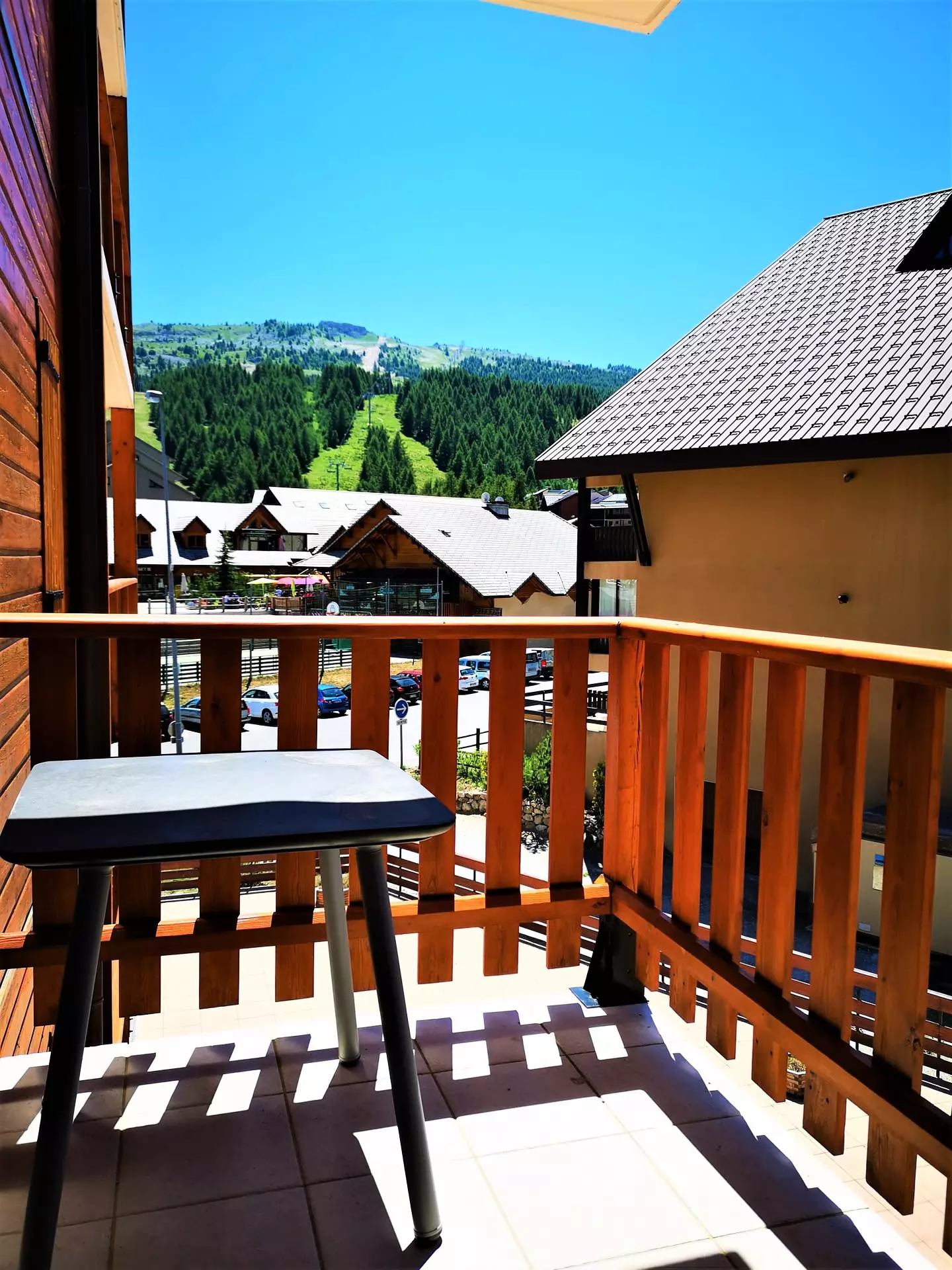 Grande terrasse avec vue sur le front de neige. Local à skis et garage inclus.