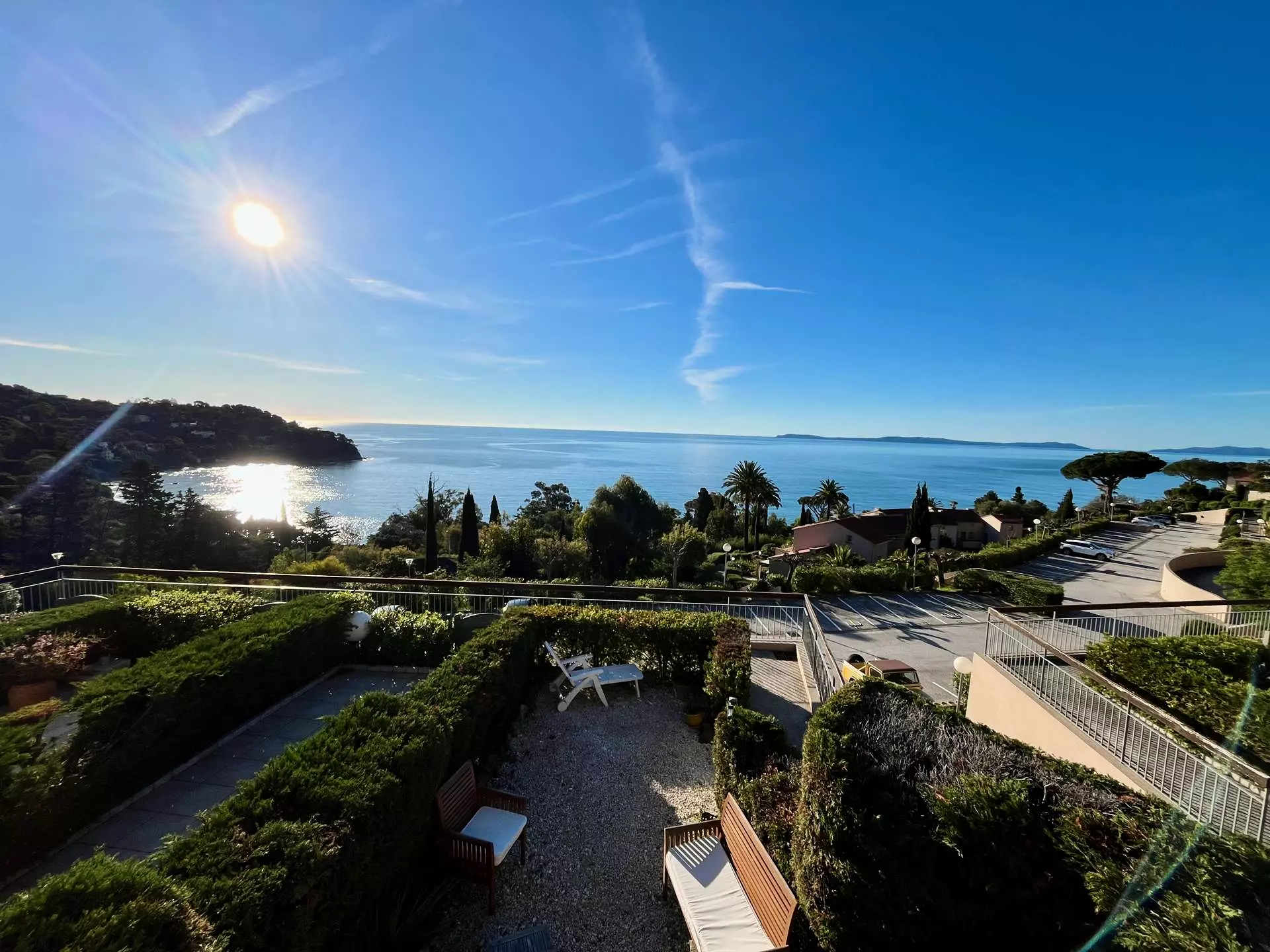 Dans résidence avec piscine et offrant une magnifique vue panoramique sur la mer.