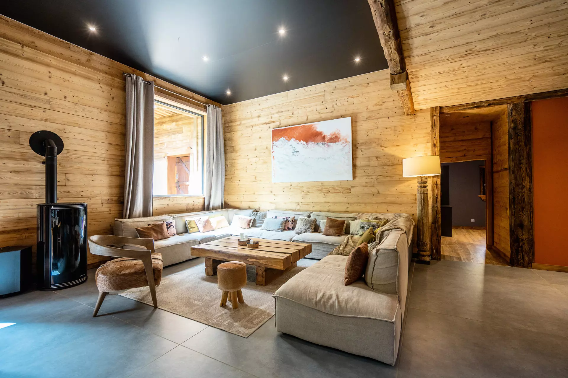 Un immense séjour salle à manger de 120m² avec poêle à bois