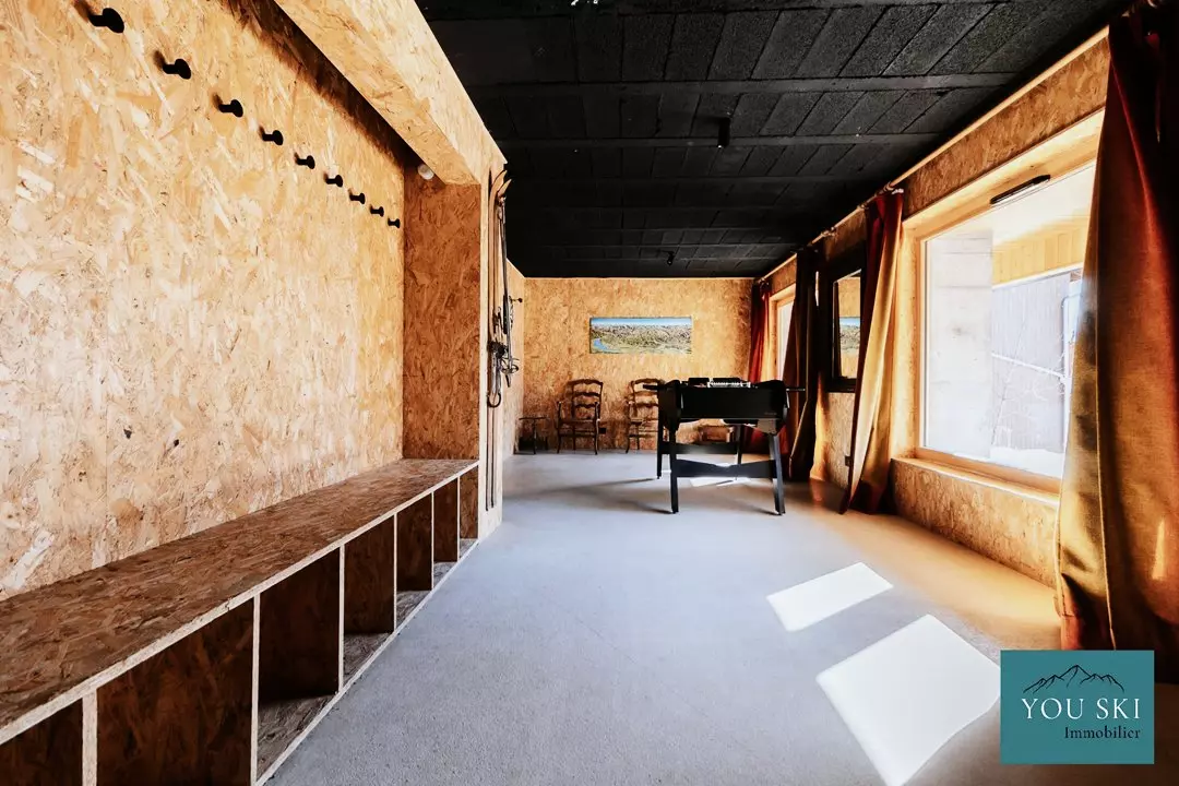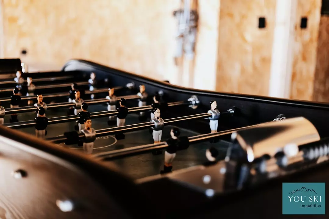 Pour vos moments de jeu et de détente, un coin salon avec TV et baby-foot est à disposition, idéal pour des instants ludiques après une journée à profiter de la montagne.