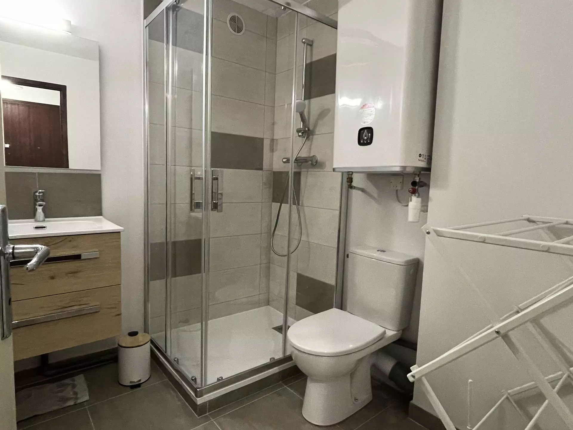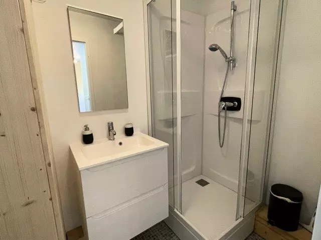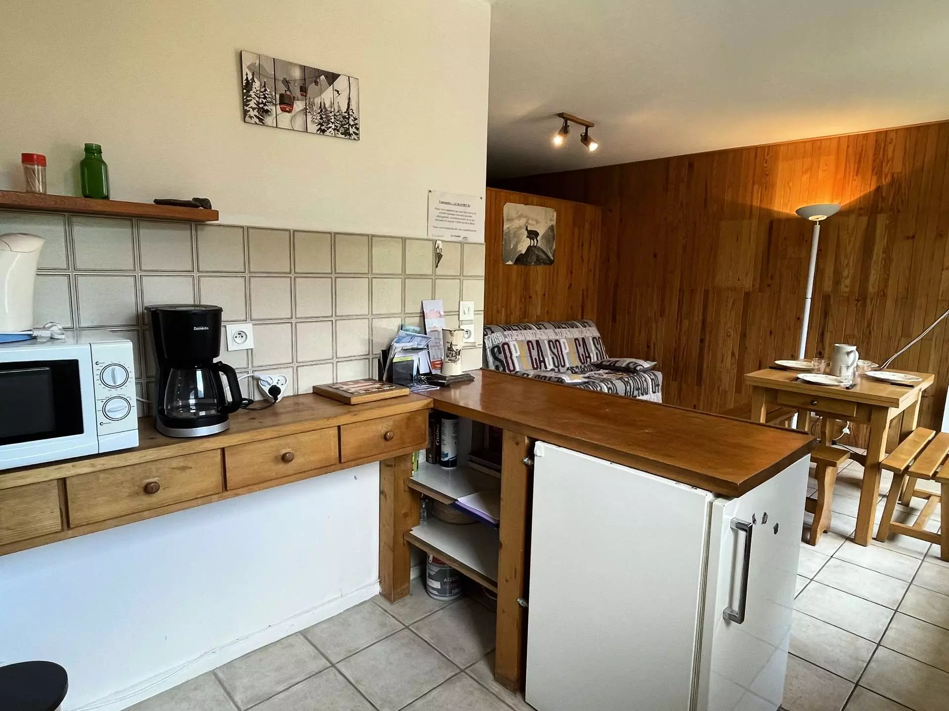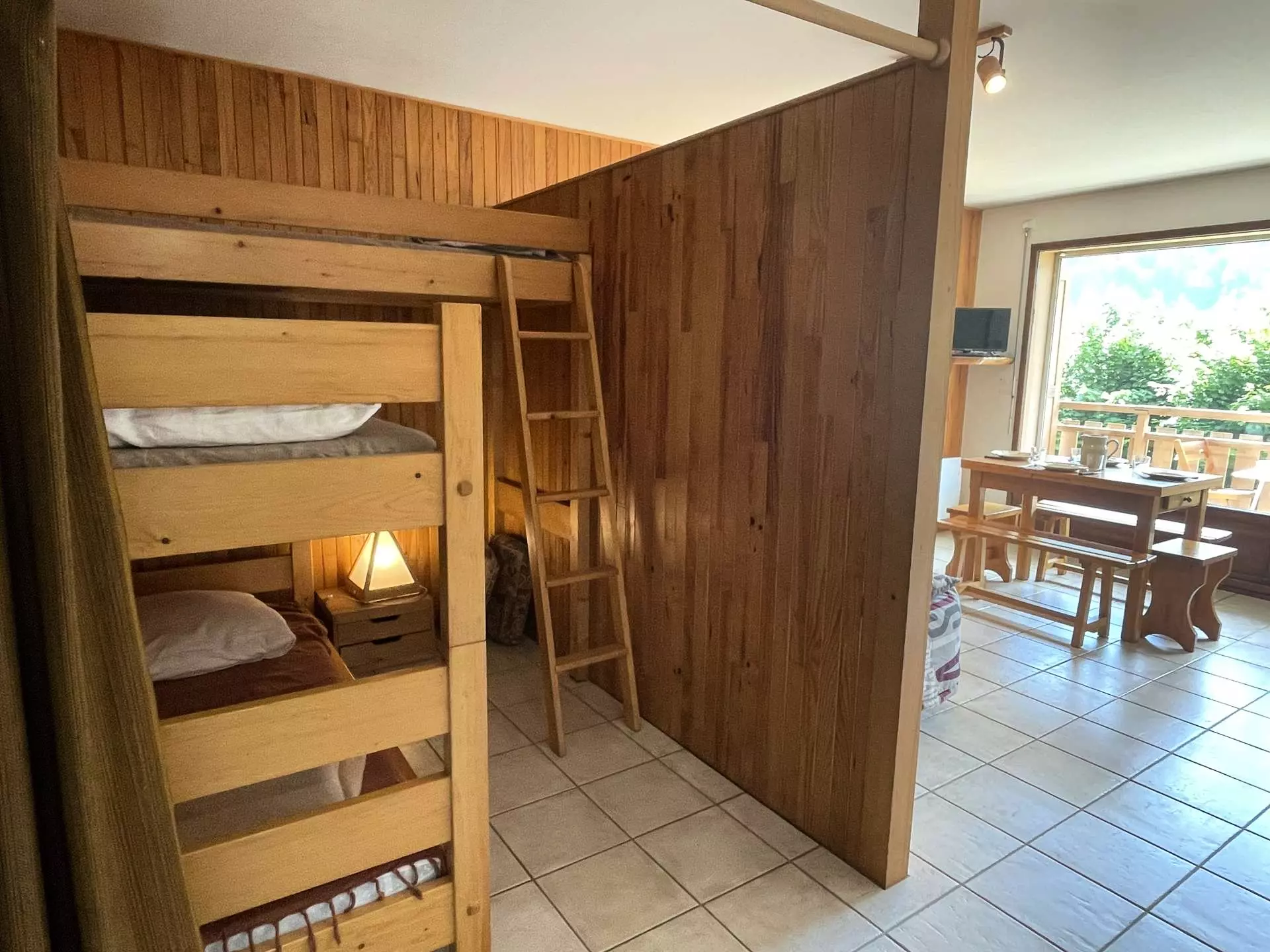 Situé au premier étage, ce studio de vacances à la superficie de 32 m² est composé d'un agréable séjour avec un canapé lit, d'une alcôve équipée d'un lit superposé de 3 couchages, d'une cuisine ouverte, ainsi que d'une salle d'eau avec douche et un WC.