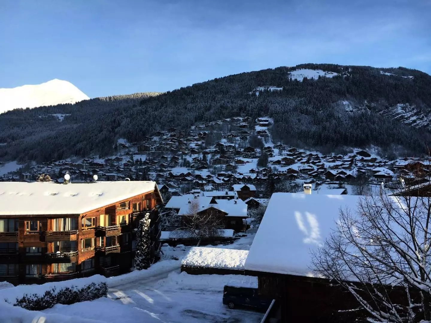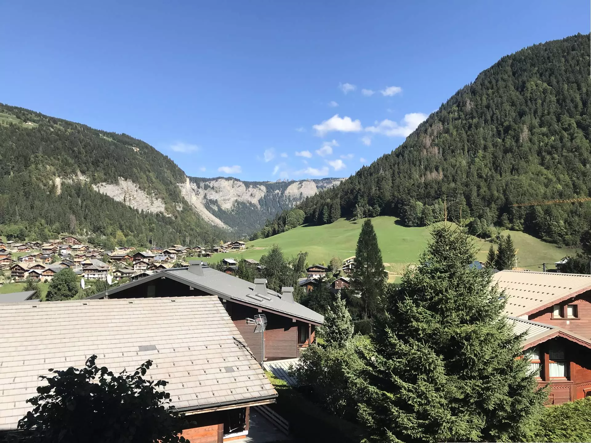 - salon avec canapé-lit, TV, cuisine, et balcon avec magnifique vue sur Morzine et Avoriaz