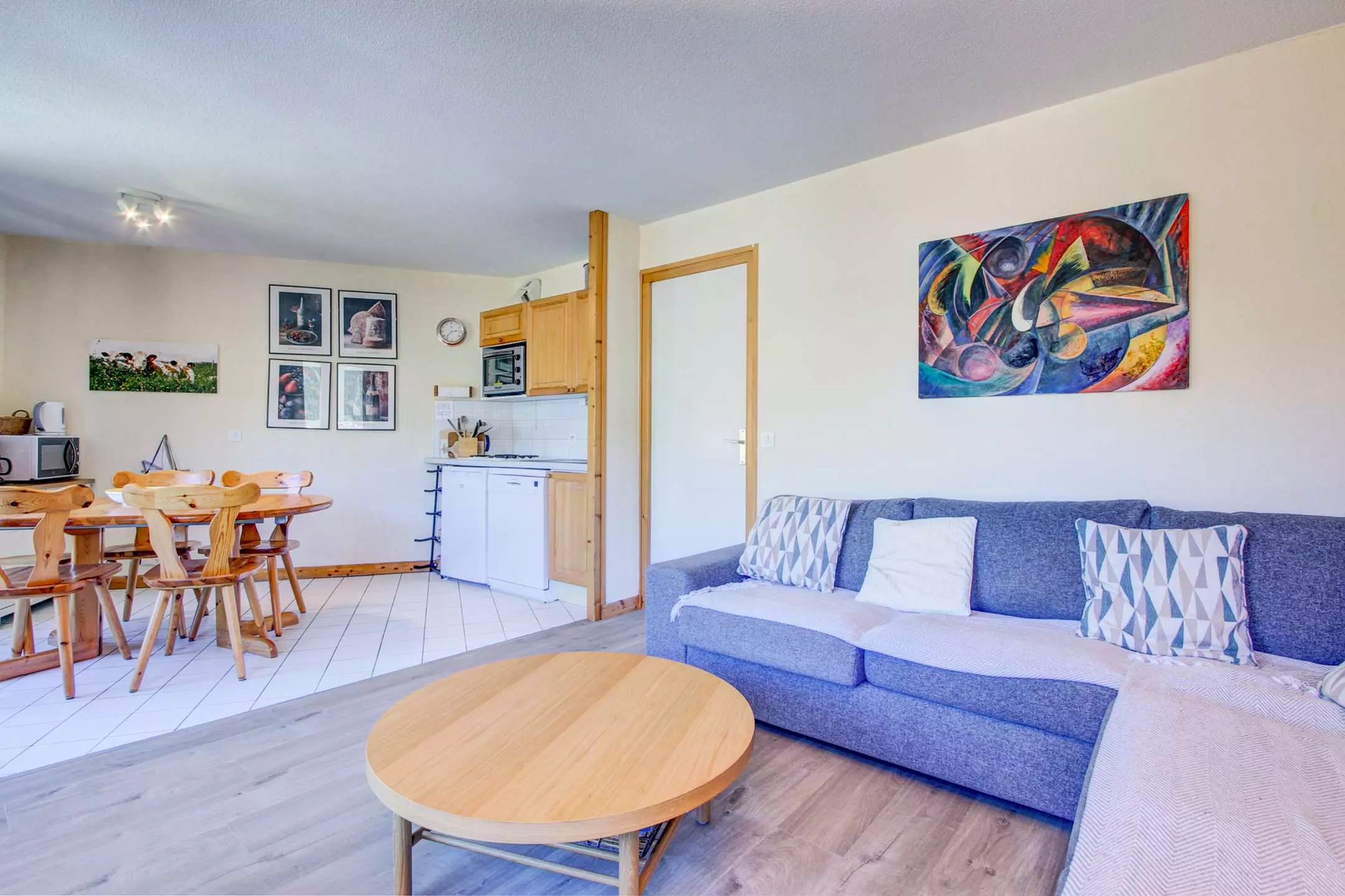 Appartement lumineux et très confortable de 38m² situé au deuxième étage d'une résidence (sans ascenseur) au pied des pistes avec vue dégagée sur le village et les montagnes.