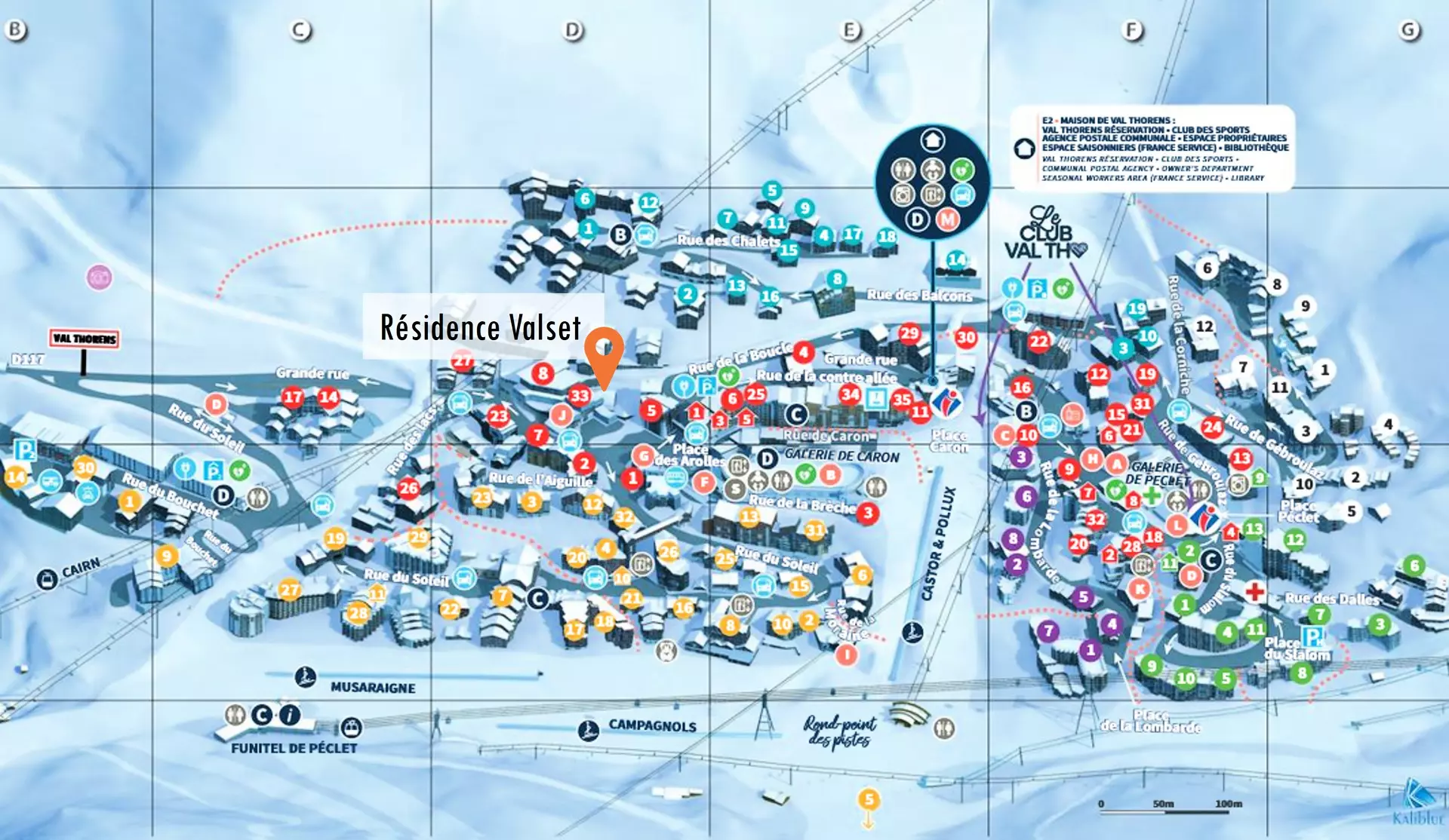 La résidence Valset est située au cœur deVal Thorens. Le centre de la station se situe à350 mètres de la résidence. Vous trouverez des commerces à200 mètres.