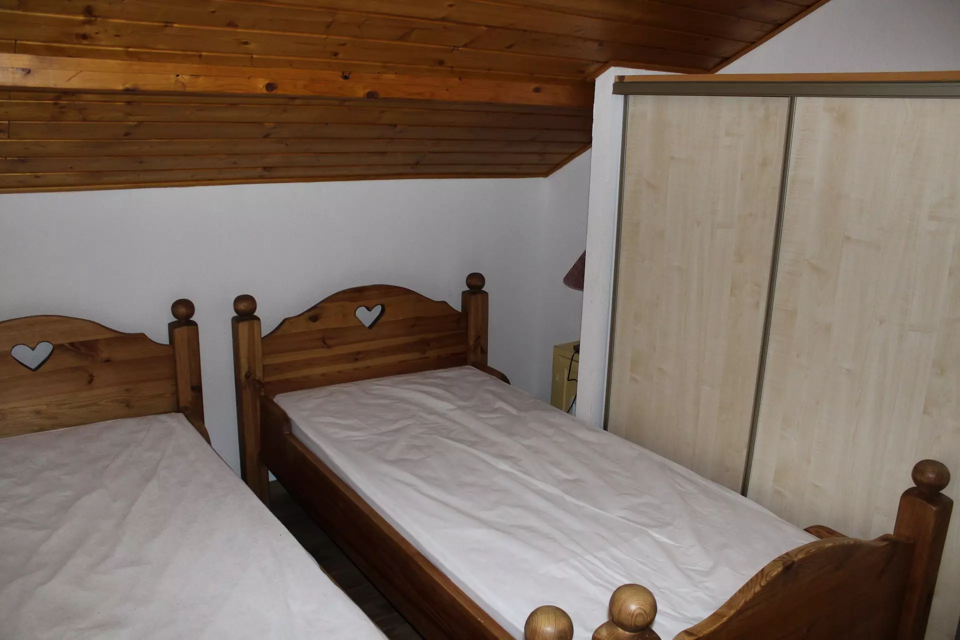Etage : une chambre avec lit double et placard, une chambre avec 2 lits simples et placard, cabine avec lit simple.