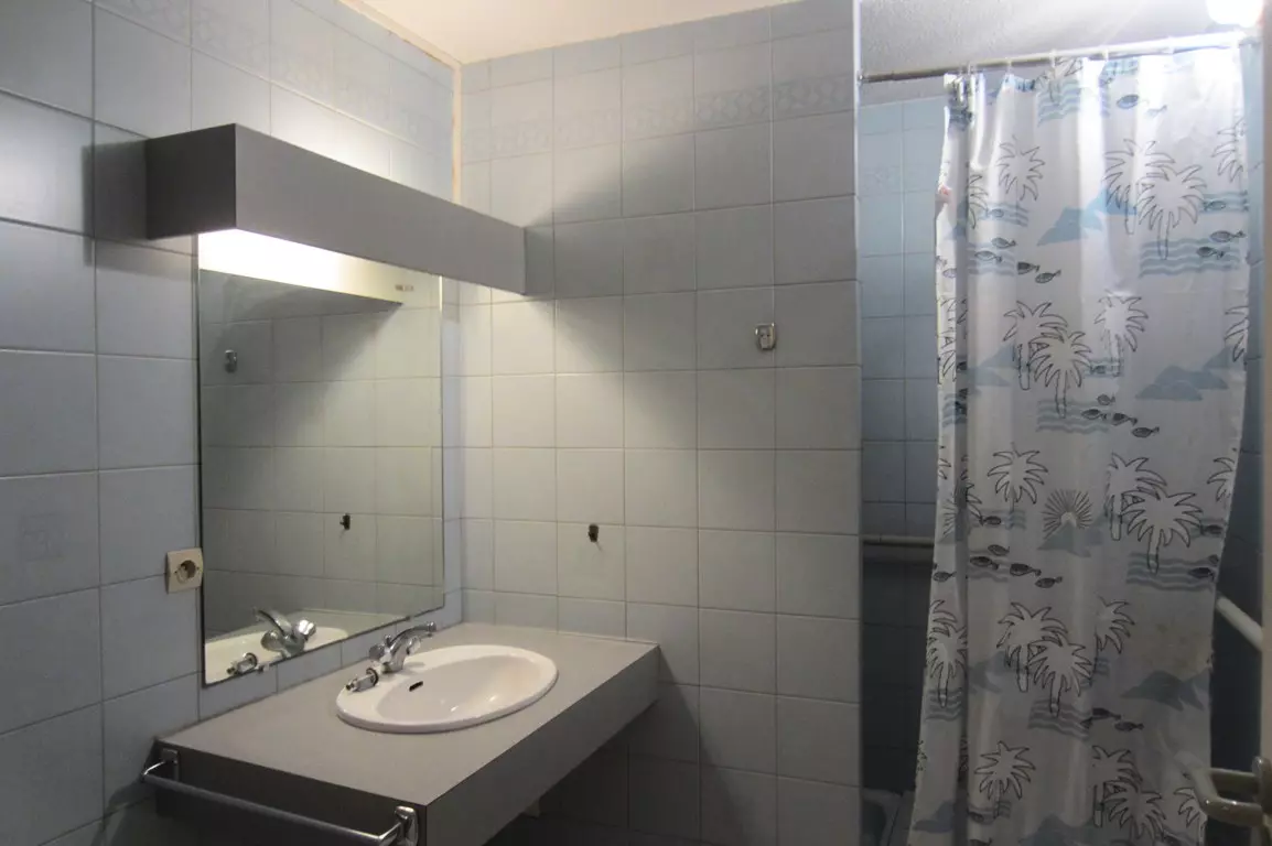 Coin nuit : WC. Salle de douche (2.72 x 1.92): vasque, bidet et douche équipée d'un siège rabattable. Chambre exposée Sud (4.71 x 3): 2 lits en 90 (sol plancher).Dans le couloir en face de l'appartement, un grand cellier pour les vélos et valises.