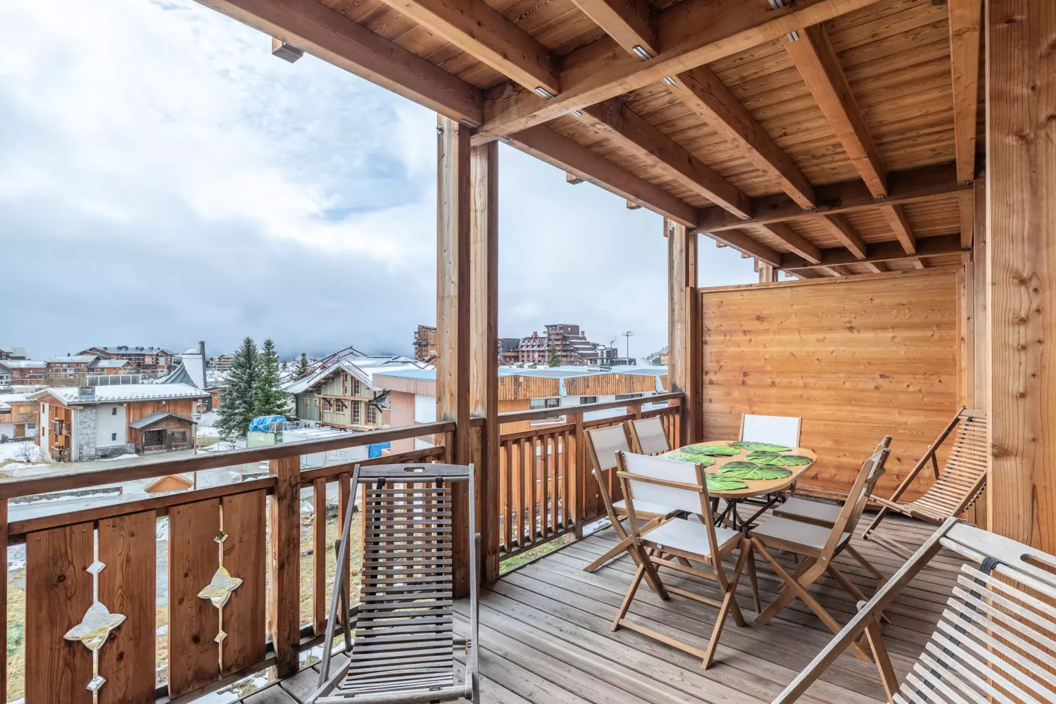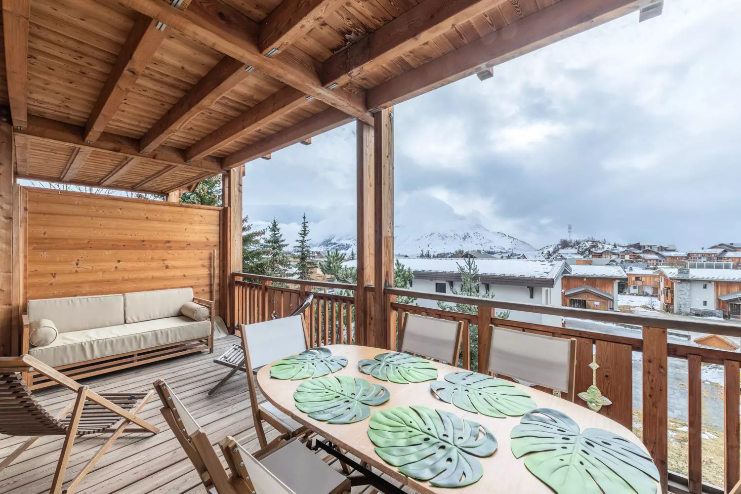 Avec son architecture en bois et ses vues dégagées sur les montagnes, cette petite résidence combine confort et praticité pour un séjour agréable.