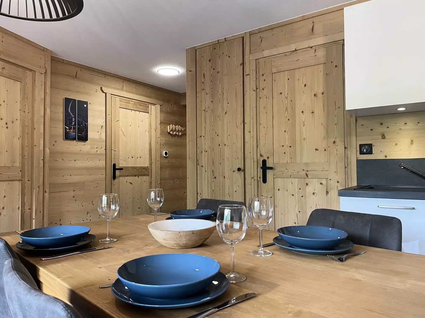 Cet appartement propose une décoration chaleureuse et des équipements de grande qualité.