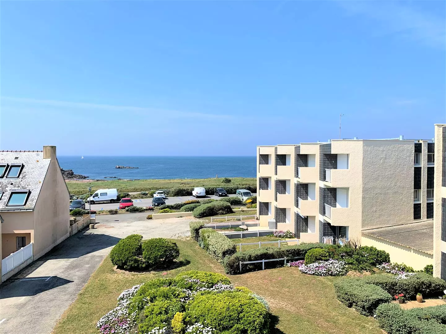 Ce deux pièces avec vue superbe sur la côte sauvage, d'environ 47m² pour 4 personnes est situé au 2ème étage sans ascenseur, du bâtiment C, porte 36, dans la résidence "Les Birvideaux".