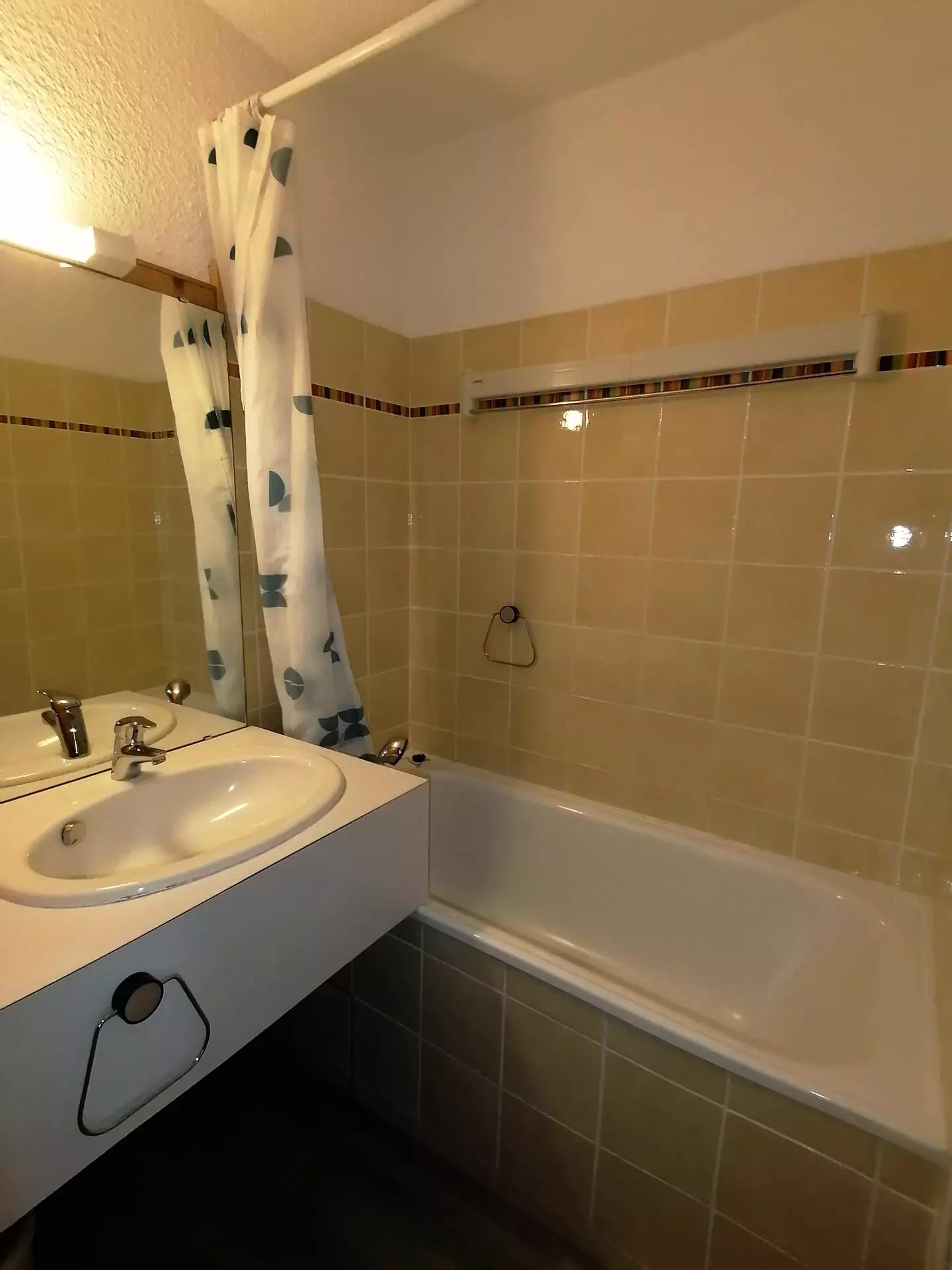 La salle de bain se compose d'un lavabo et d'une baignoire. WC séparés.